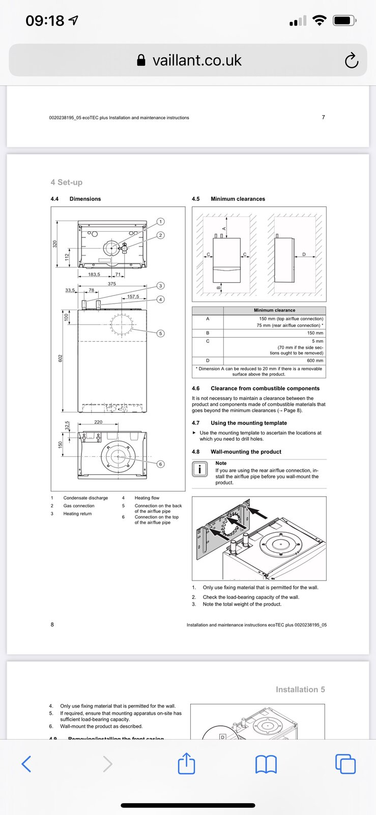 I believe based on boiler document the flue can be touching the top of ceiling and 15mm away from wall? Is this true?