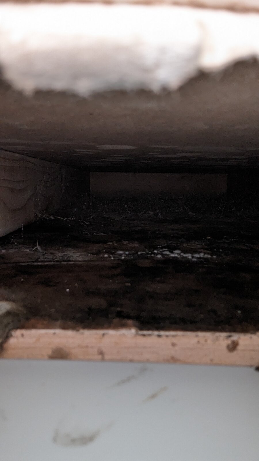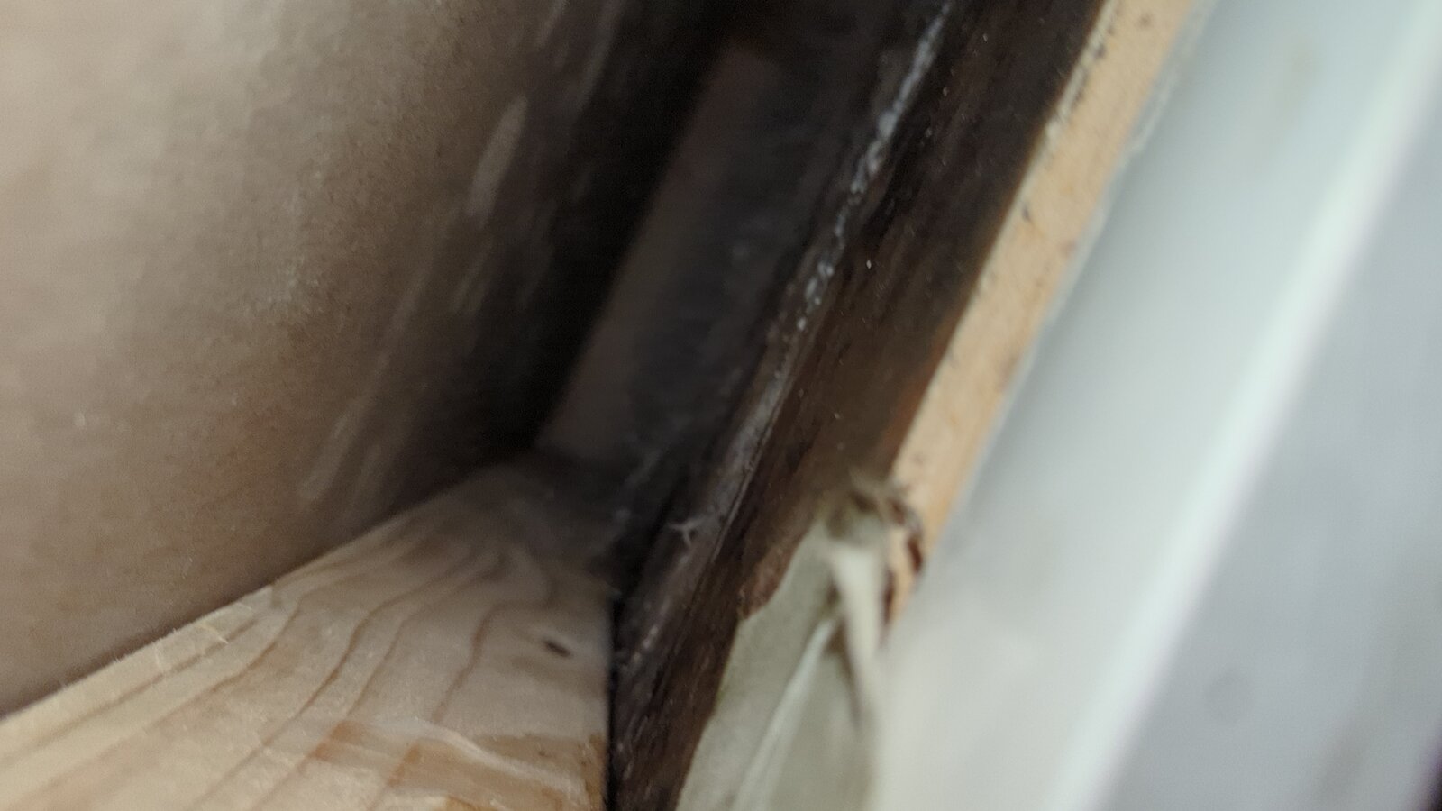 Nothing massively obvious when looking under shower but could feel wetness, checked in cupboard that backs onto the shower, piece of the skirting was bulging a bit so took this off.. black mould on that, cut through plasterboard and it's very damp with lots of thick black/white mould and from we can see goes about 4 ft up the wall.