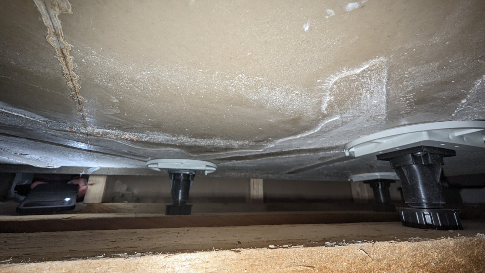 The housebuilder came out (as we. Said it must be connected to previous issue so under giver still) the handyman's checked it confirmed all connected and a crack was visible underneath the pan, must likely done on installation so we never would have known, everything will need replacing and redoing about a week's job he'll log with office.