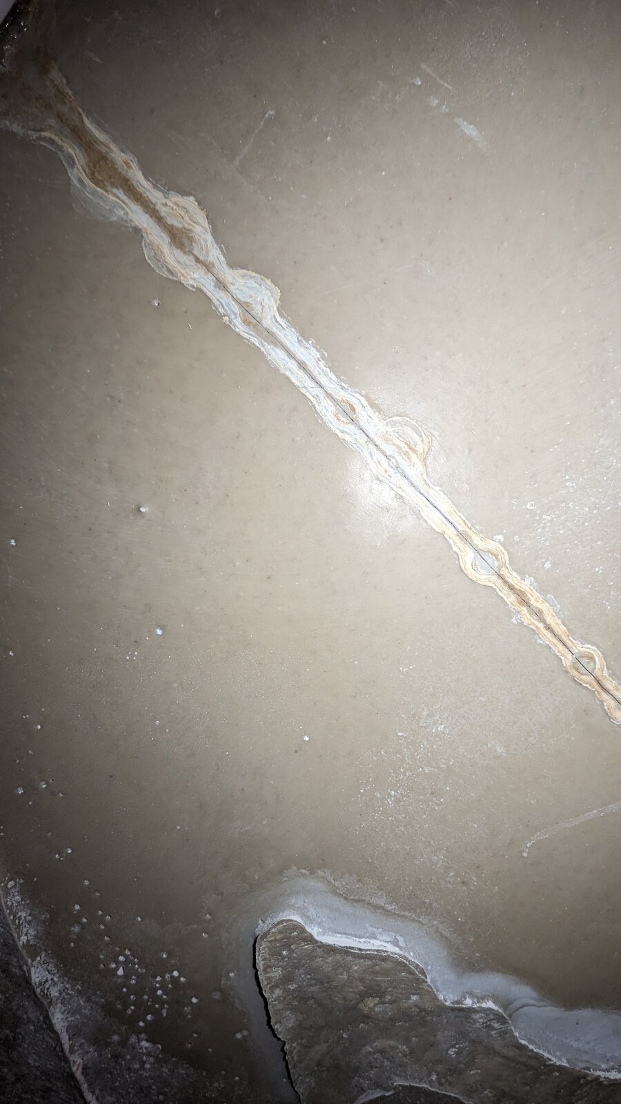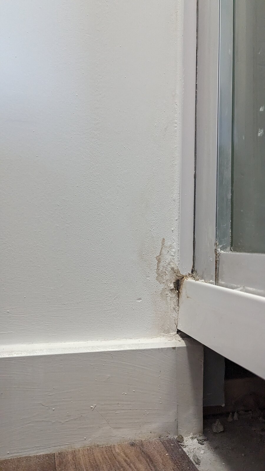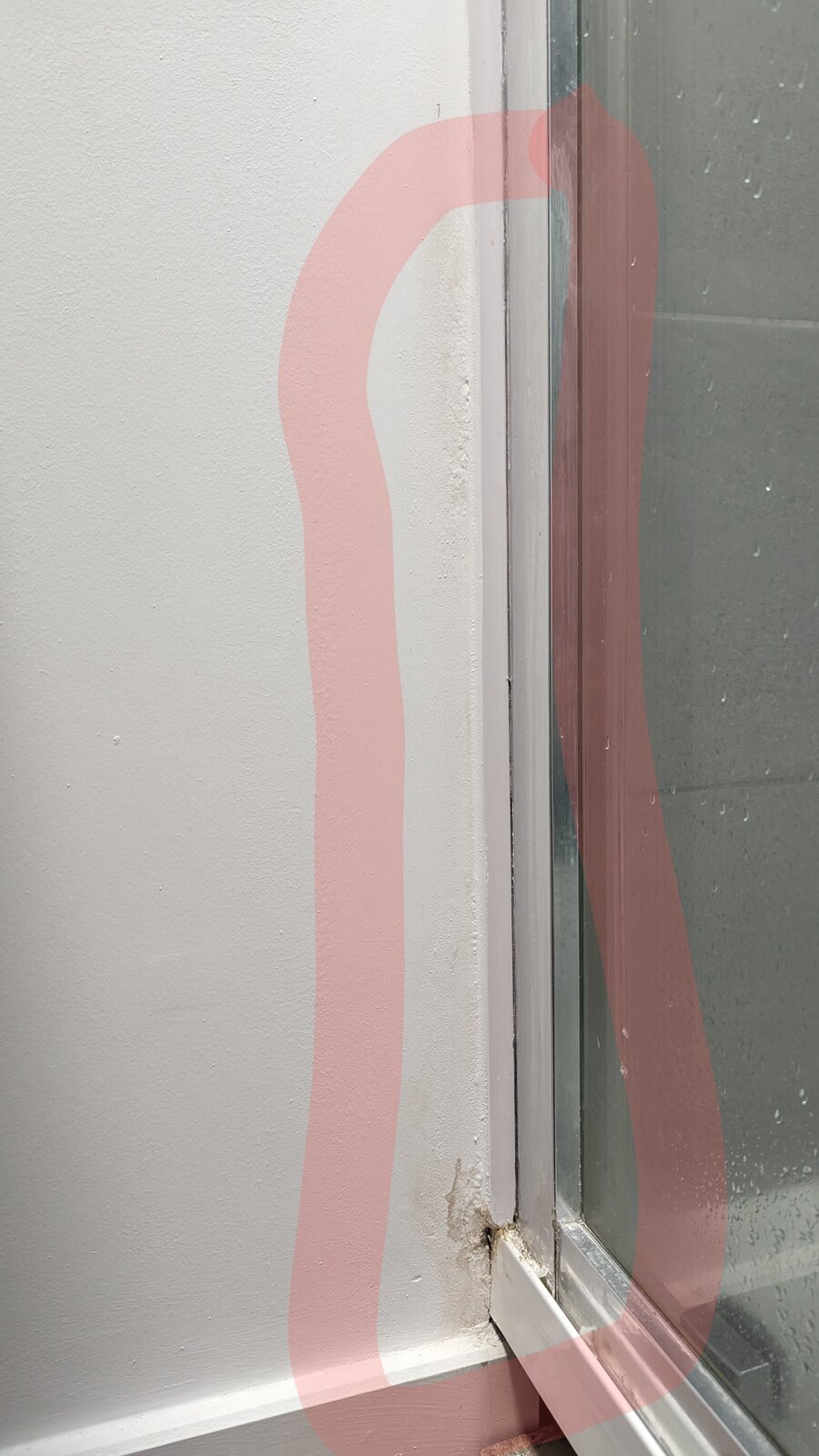 I've attached some photos to show the state of it but was hoping someone could let me know if they seen this before and what the cause could be .... ( The highlight pink area is the damp on the shower door side that has been reported and painted over for months and keeps coming through, everything else shows the underside crack and the mould behind the shower wall)
