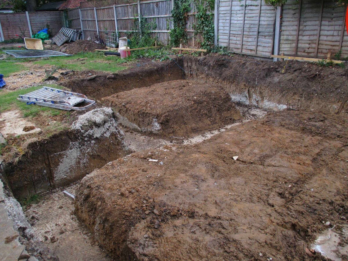 First we dug a big soakaway 5m from rear of property using 4 Aqua-cells because of access of the digger after footing. All the foundations done including concrete, foundations depth 1.7m!!