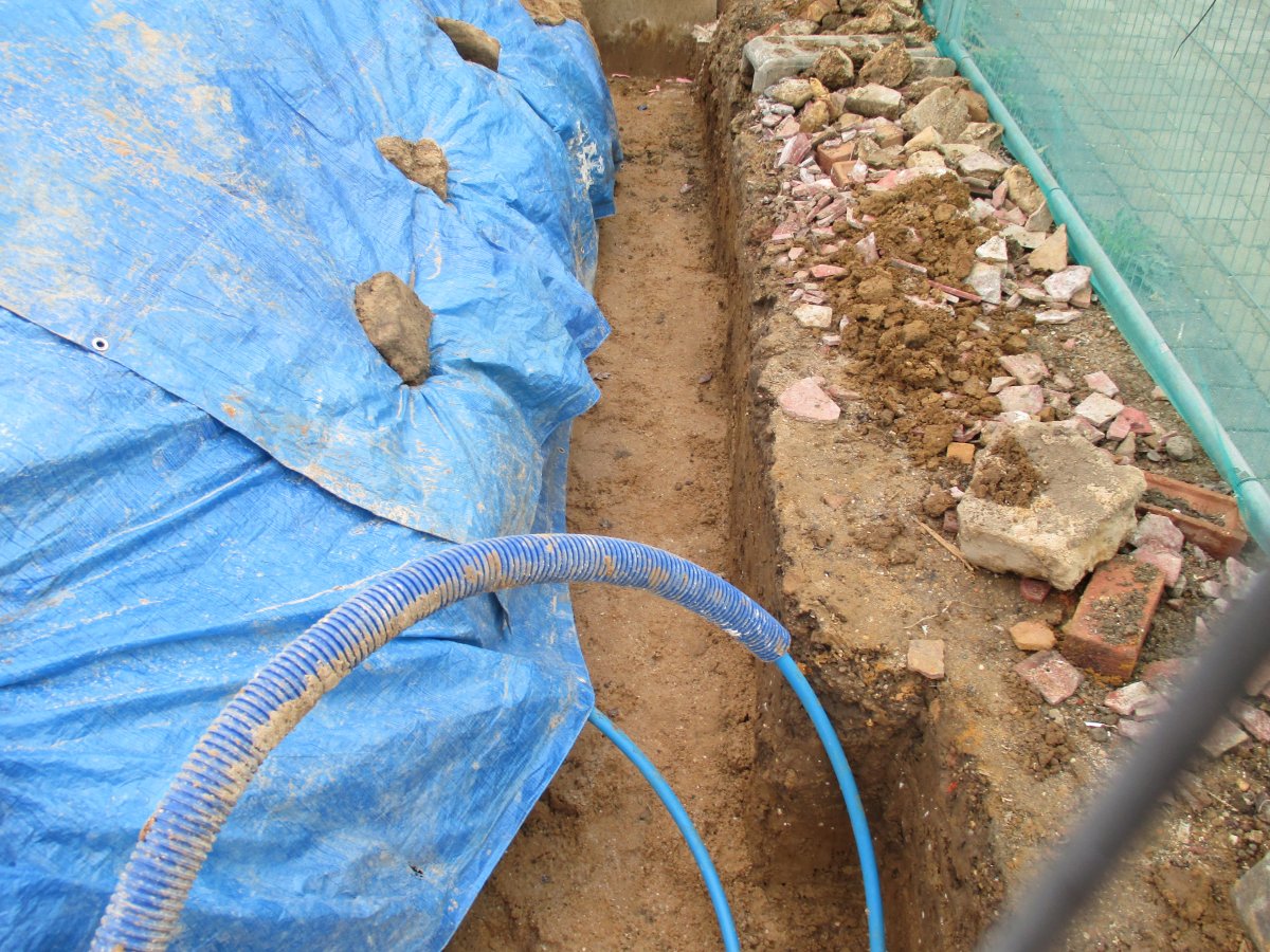 Putting the blue pipe ducting ready for the blue plastic water pipe.