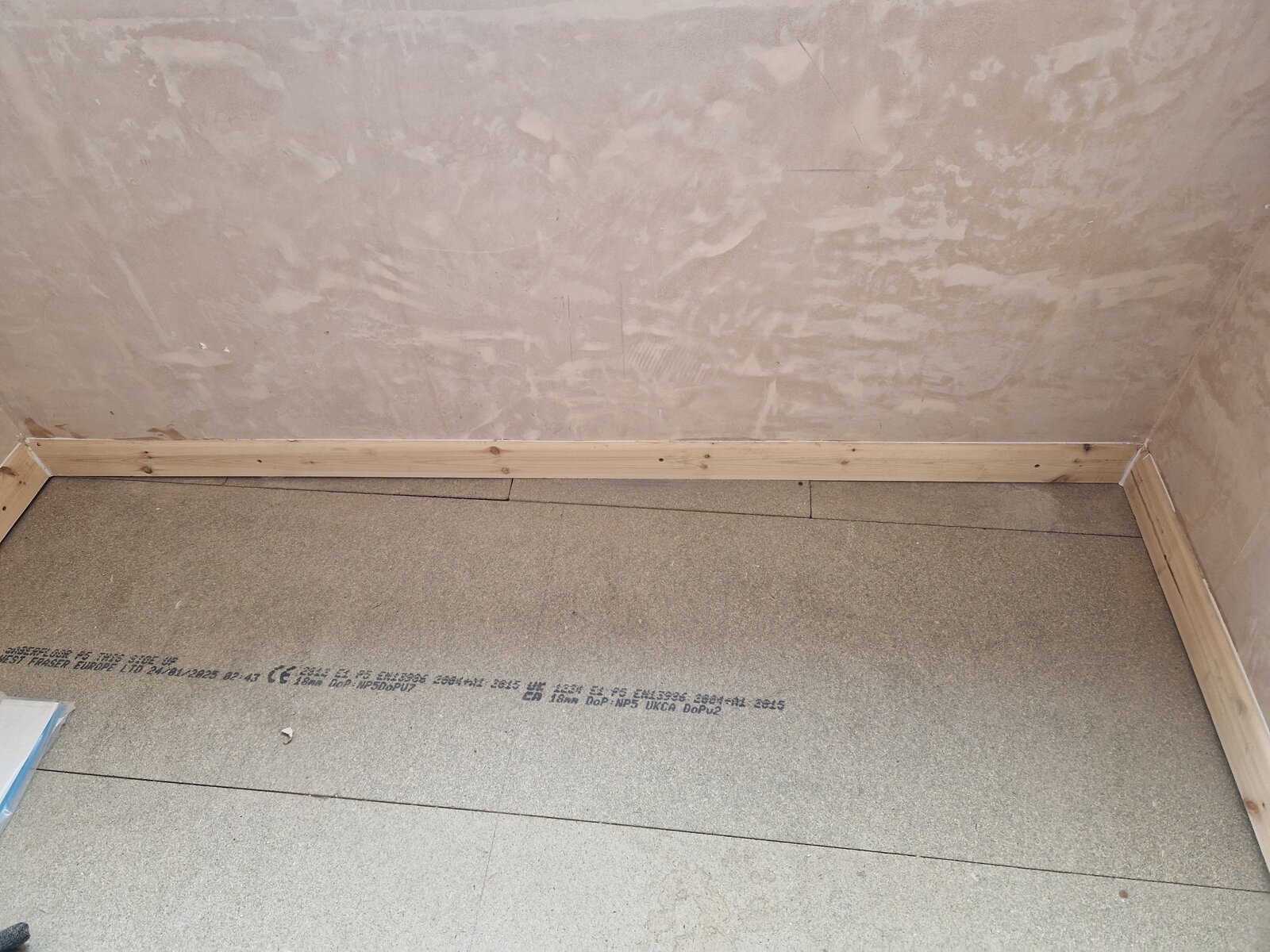 When he put the floorboards down in the upstairs extension, the end wall did not look straight - it looked way out. I have attached a picture.