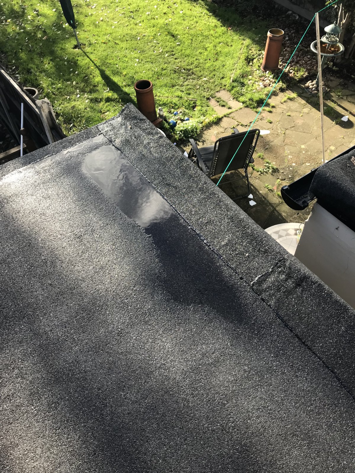 I had a new felt put on my flat roof extension. Ply + insulation underneath deemed to be in good condition so those remained. Noticed after it rained a bit of pooling in 2 spots. Raised it with roofer and was told that generally you'll have some surface water on a flat roof and it's nothing major to worry about. I’ve attached a pic. Thoughts? Anything to worry about?