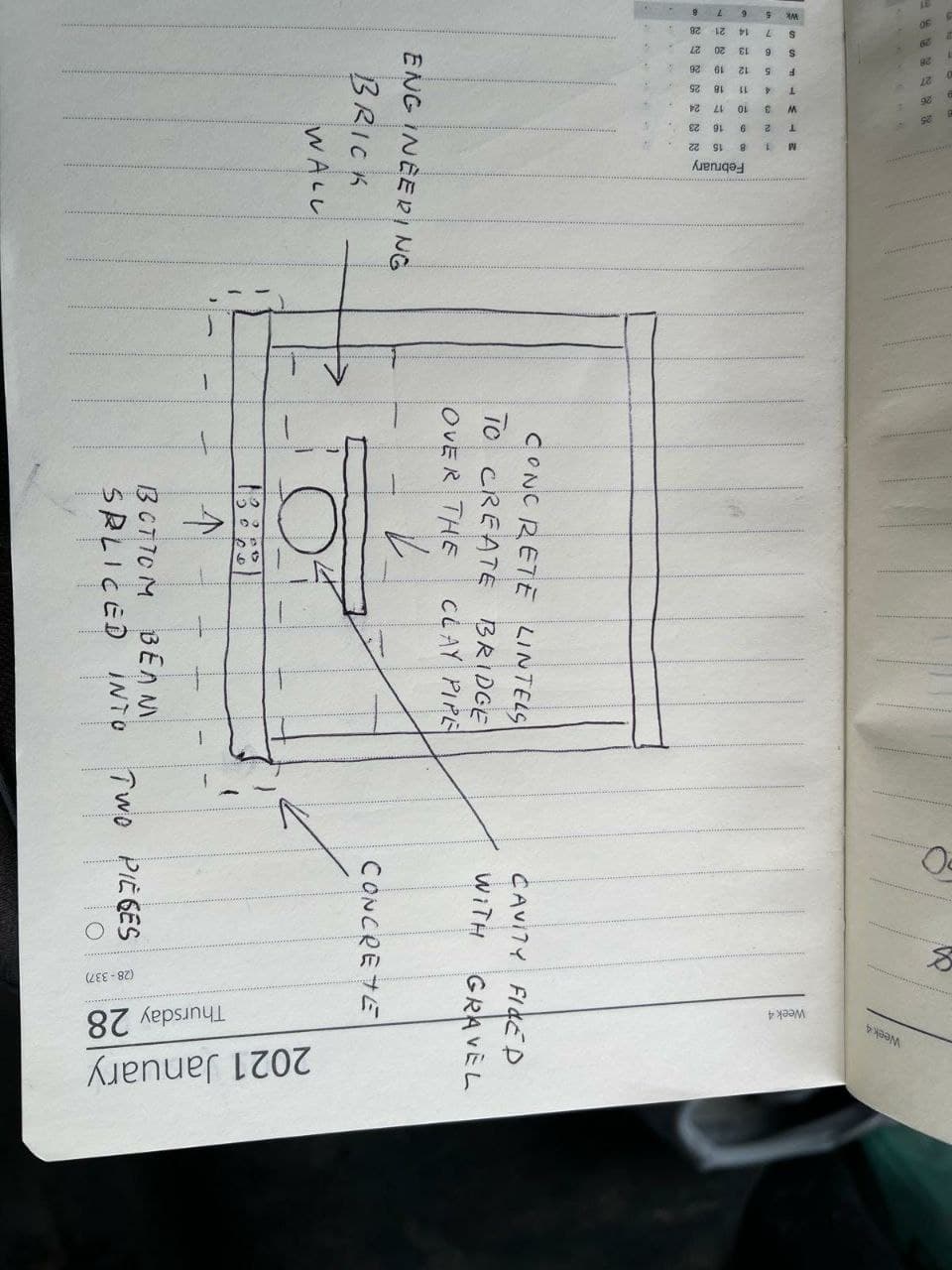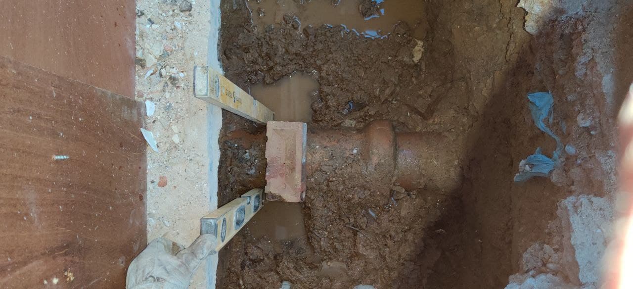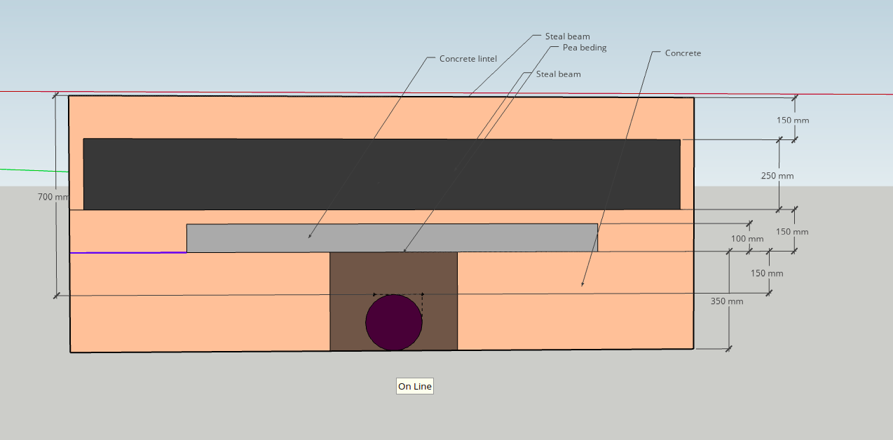 The builder proposes to dig under the pipe and lay the steel beam there, however, I think this is unnecessary work as we have just enough height to do the work over the pipe.