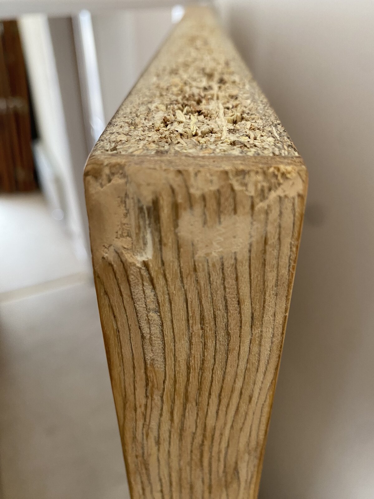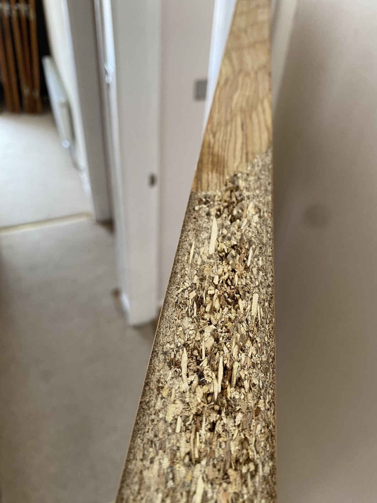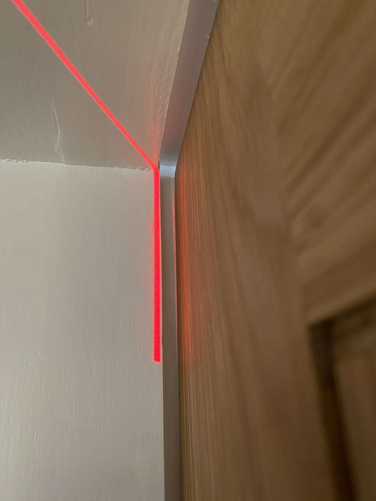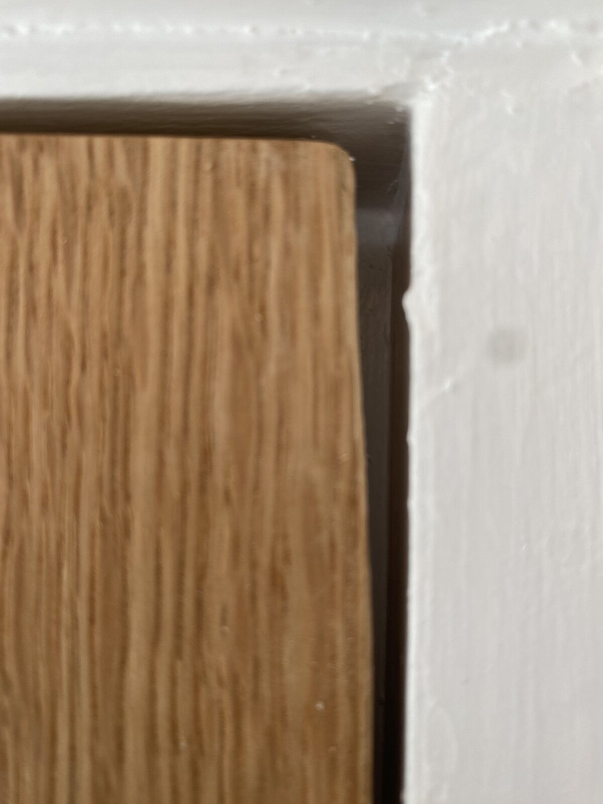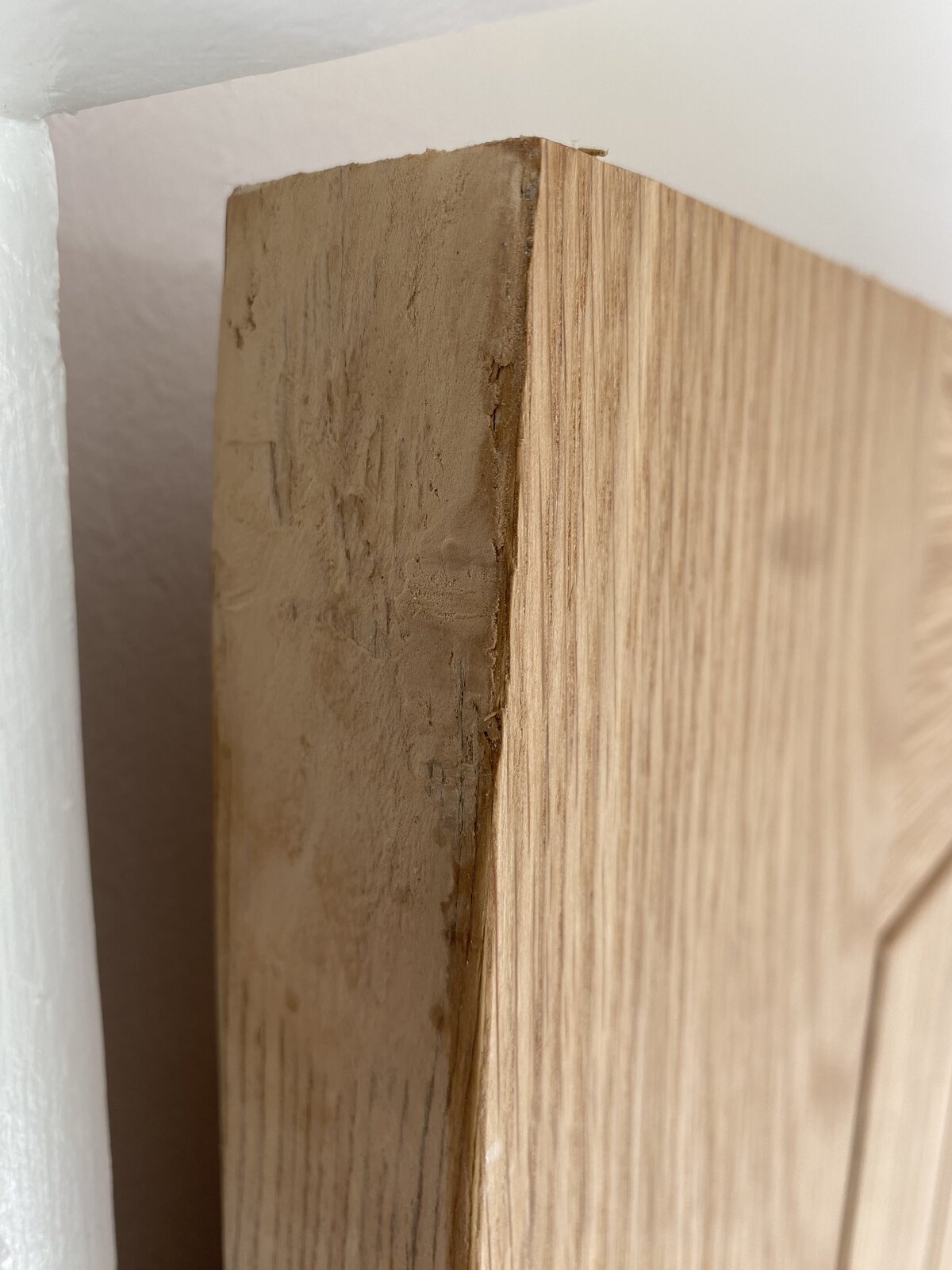 I mean, some of the new doors that have been fit have wood filler in them, a couple have the veneer plained off and the others are chipped on the edges and the living room door is warped…..the casing is plumb.