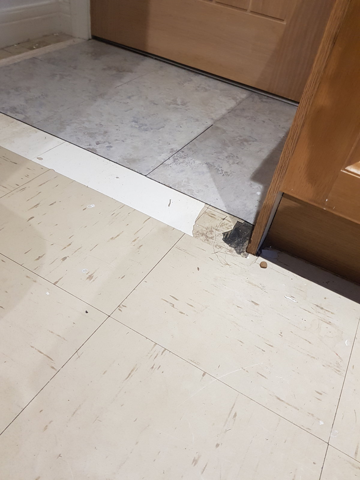 2. What would you do about the damage in the pic where I've had a bit of damage appear round the end of a utility cabinet? I bought a load of tiles when we moved in (Grey ones) and stupidly started originally to try and lift these tiles thinking it would be an easy job but it wasn't so left it as it until we re did the kitchen.