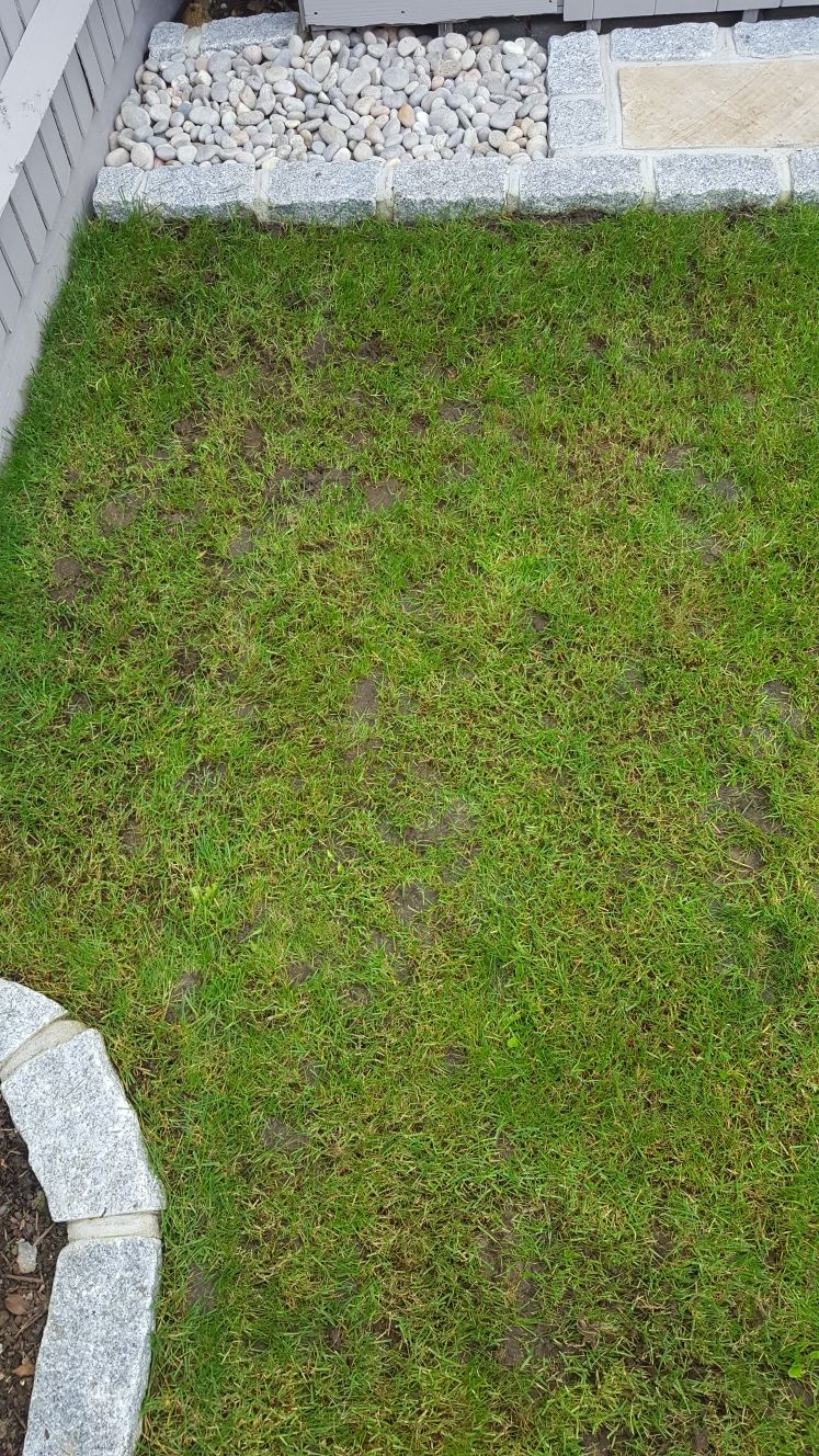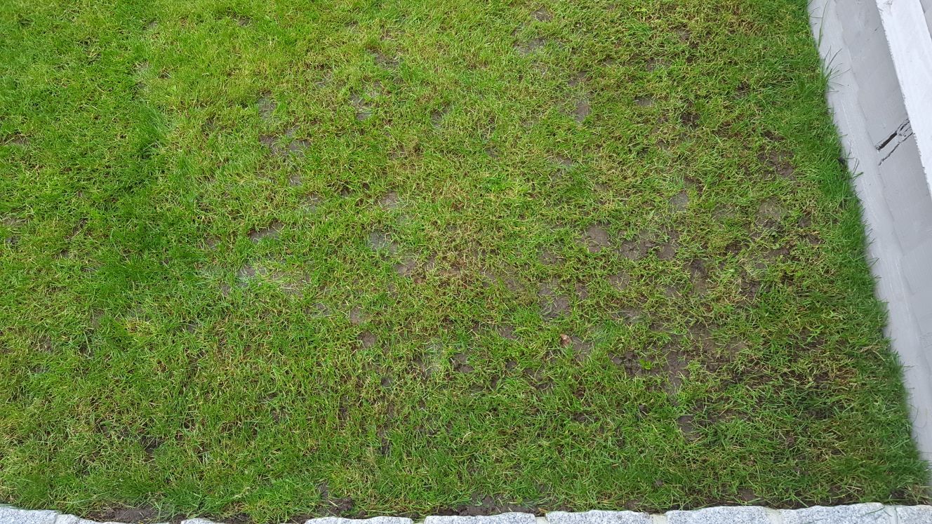 However... the lawn was installed on the second week of July (this year), and about 5 - 6 weeks back, I noticed that part of the lawn, located at the very end of the garden, was getting some bald spots. The lawn in that area has been increasingly disappearing and the spots have been getting bigger and bigger. The affected area has also grown in size. And now I seem to be getting the same smaller bald spots in some other places too.