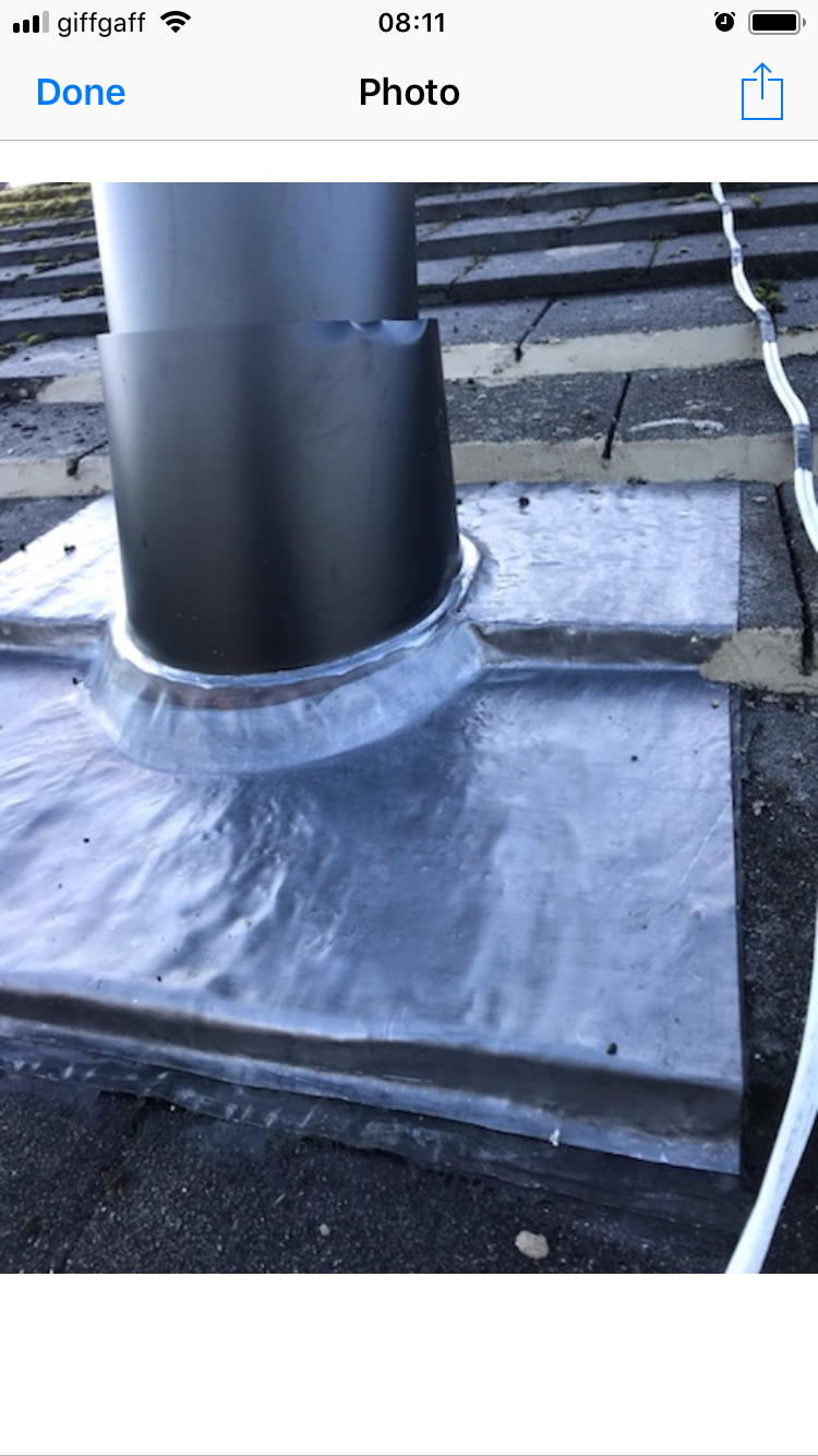 We’ve had a roofer come and redo the lead flashing and fix the roof bcoz the installer did such a poor job and we had he most momentous leak in heavy rain. It all looks good on the roof now and we have used rock wool in the loft to insulate around the flue as we were getting a huge draft into the bedroom.