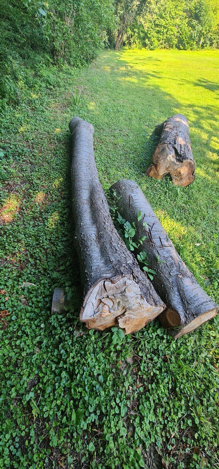 We completed on our "project" a week before Christmas and on Boxing Day a storm toppled a pair of 40-year-old cherry trees. After salvaging a lot of the wood for the new wood burner we're left with three large logs (first pic below)