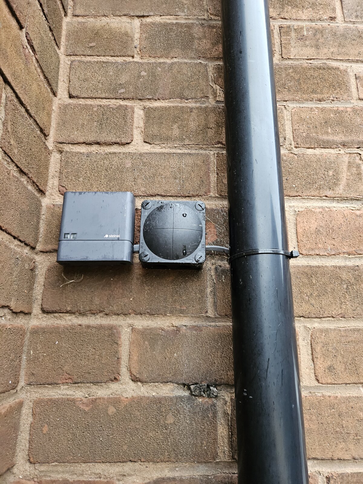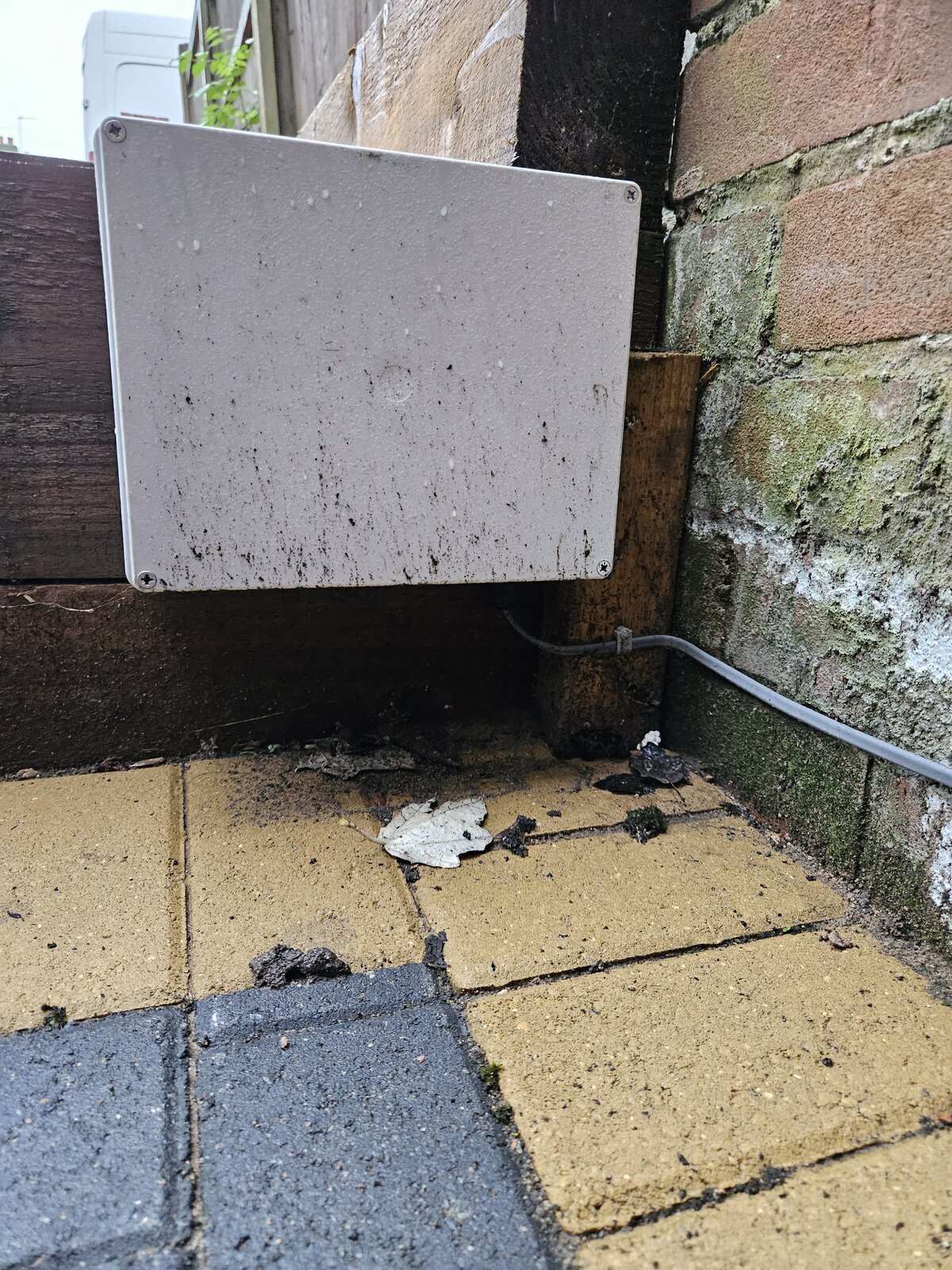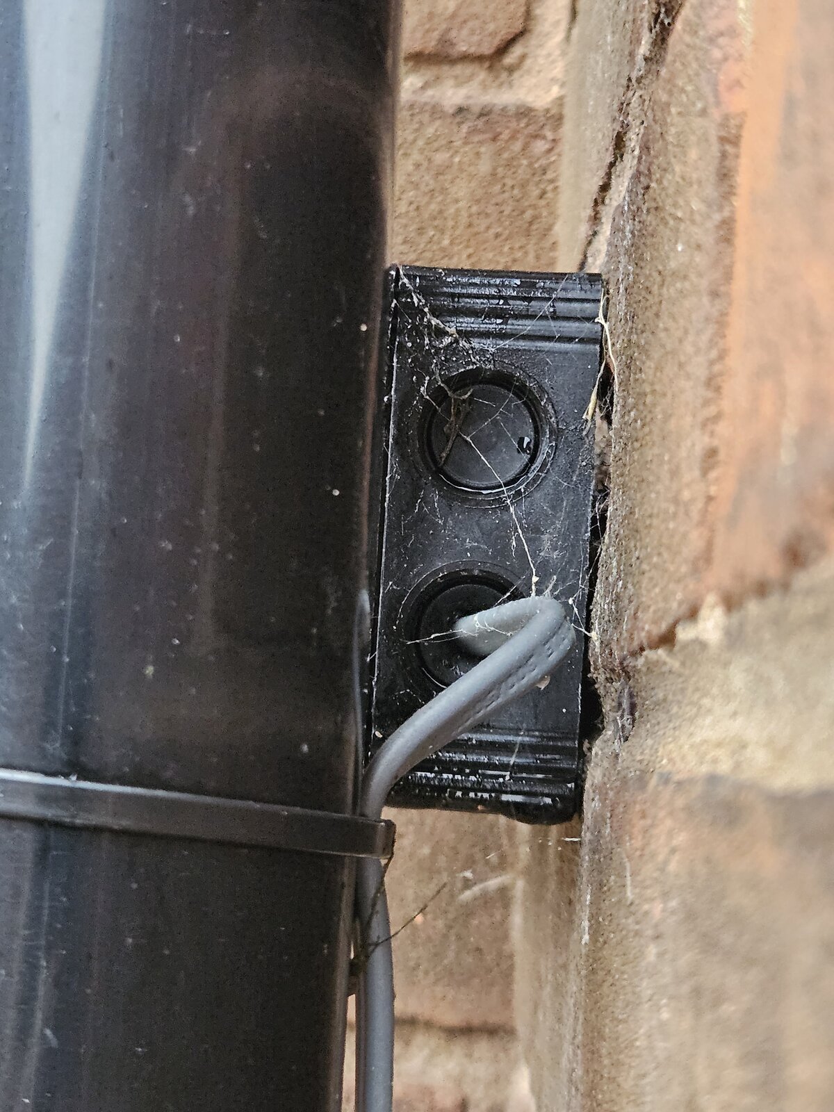 They've just used 2.5mm mains wire, and cable tied it in place. It's not even running upwards into the boxes which surely means water is liable to flow in?