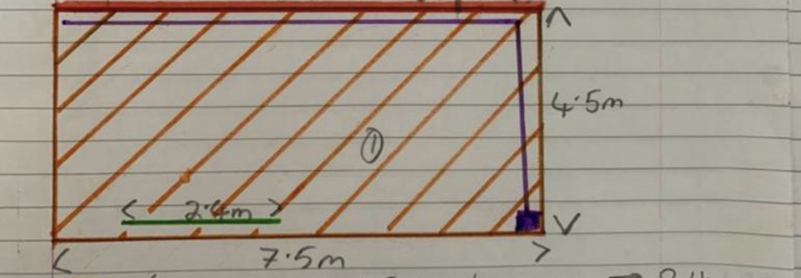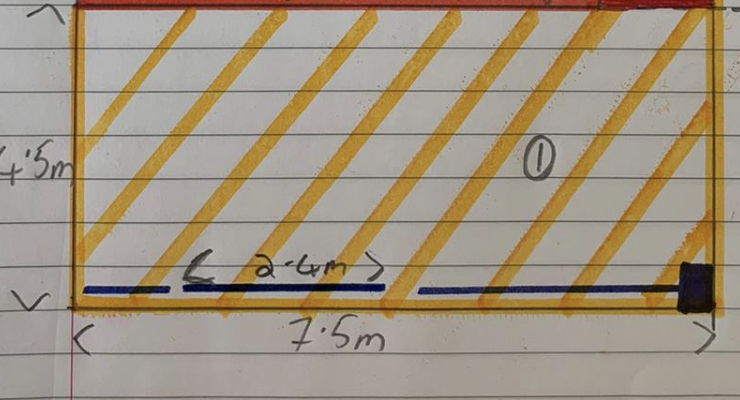 See attached Photos purple lines are the drainage grid, on both options... the 2.4m line is a step down from house. The Red line is Sleeper side where grass is.