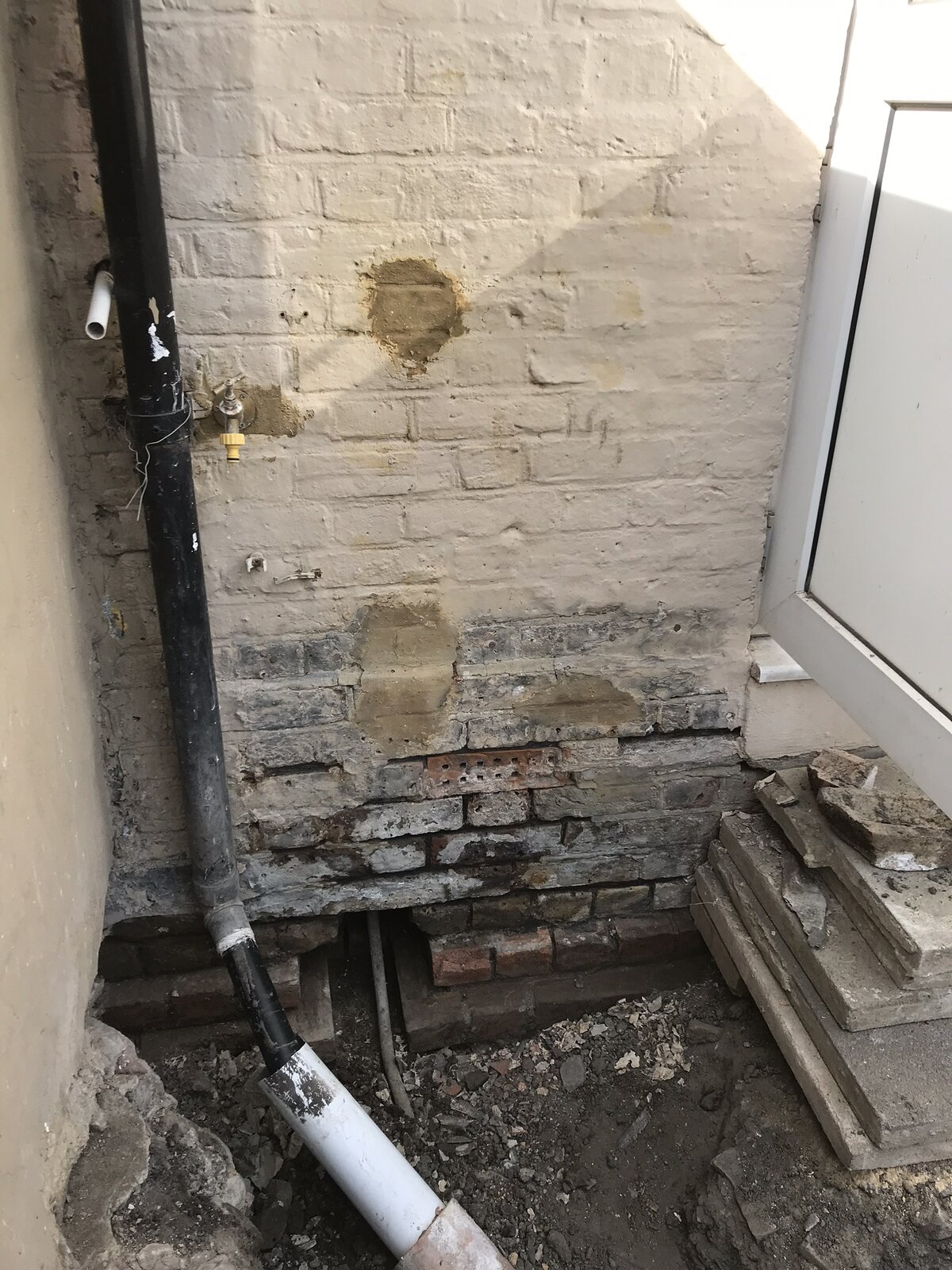 What i did notice however after cleaning the wall, at some point it looks like they had some damp proofing done, and I can also see a damp proof cause where the air brick is. Just a shame the damp people didn't fix the root cause as you previously mentioned in an earlier post.