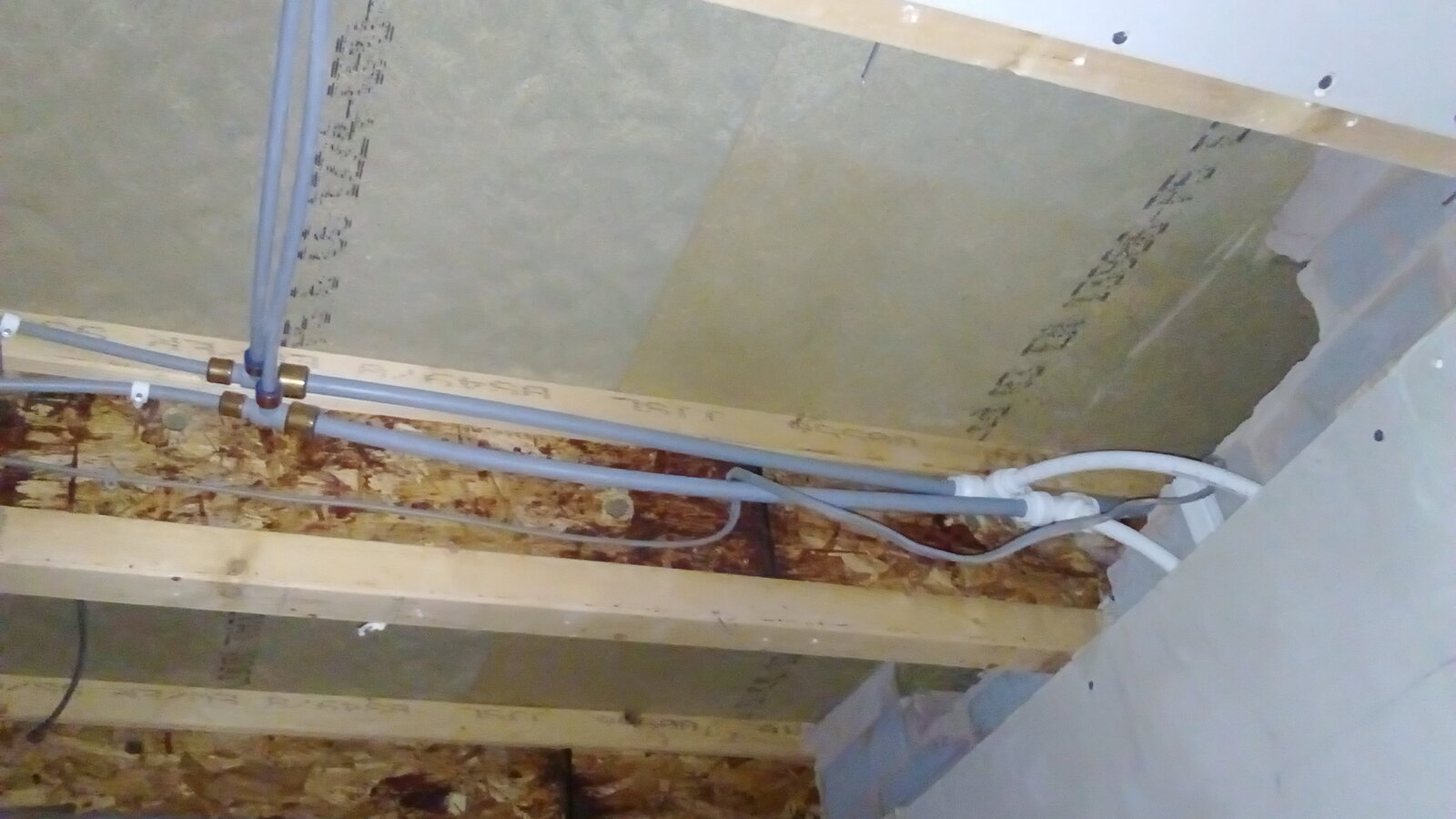 The existing main pipe is 15mm with 10mm feeds for other radiator. We've used 15mm for the new radiator (white pipes in the picture).