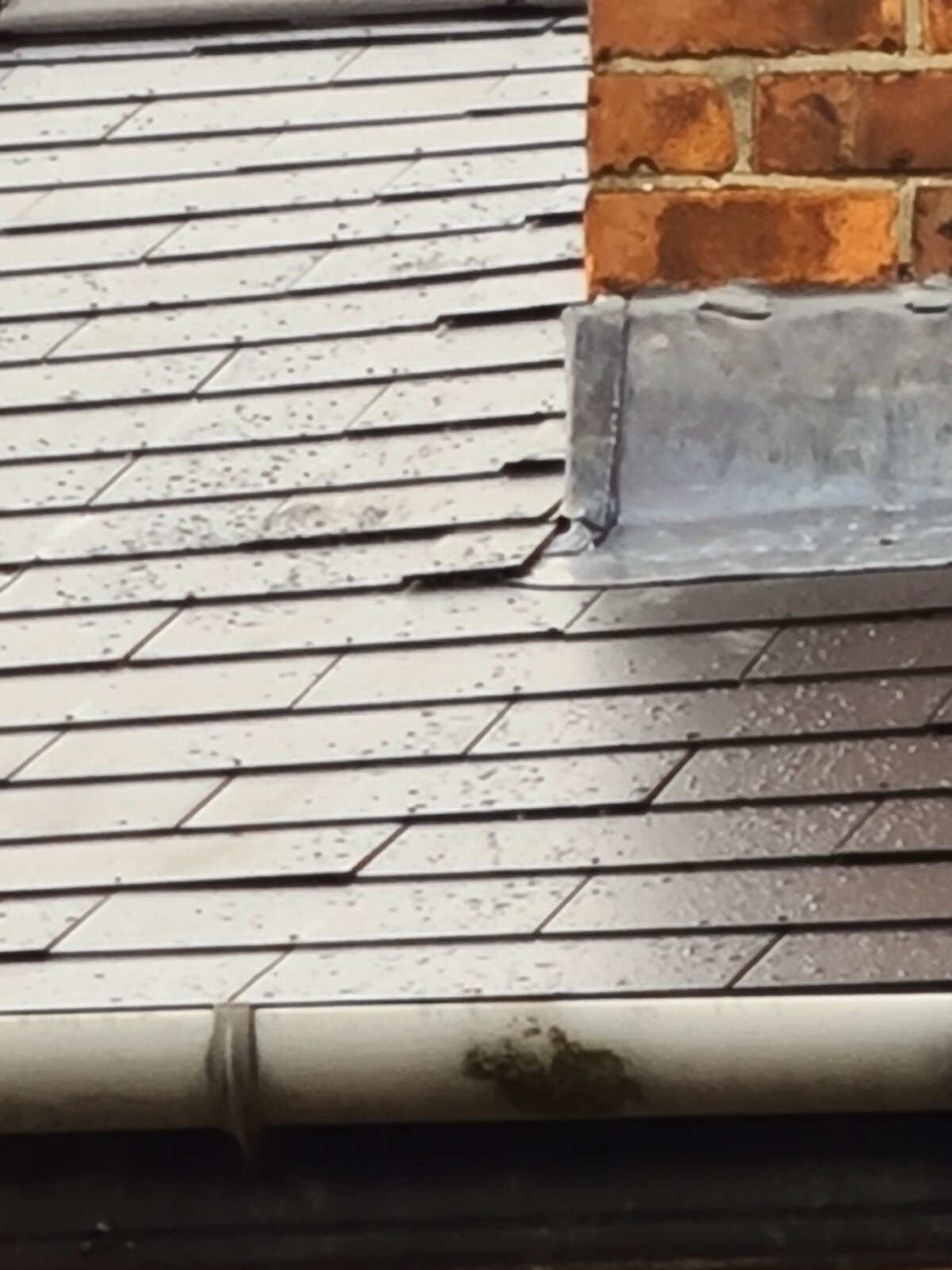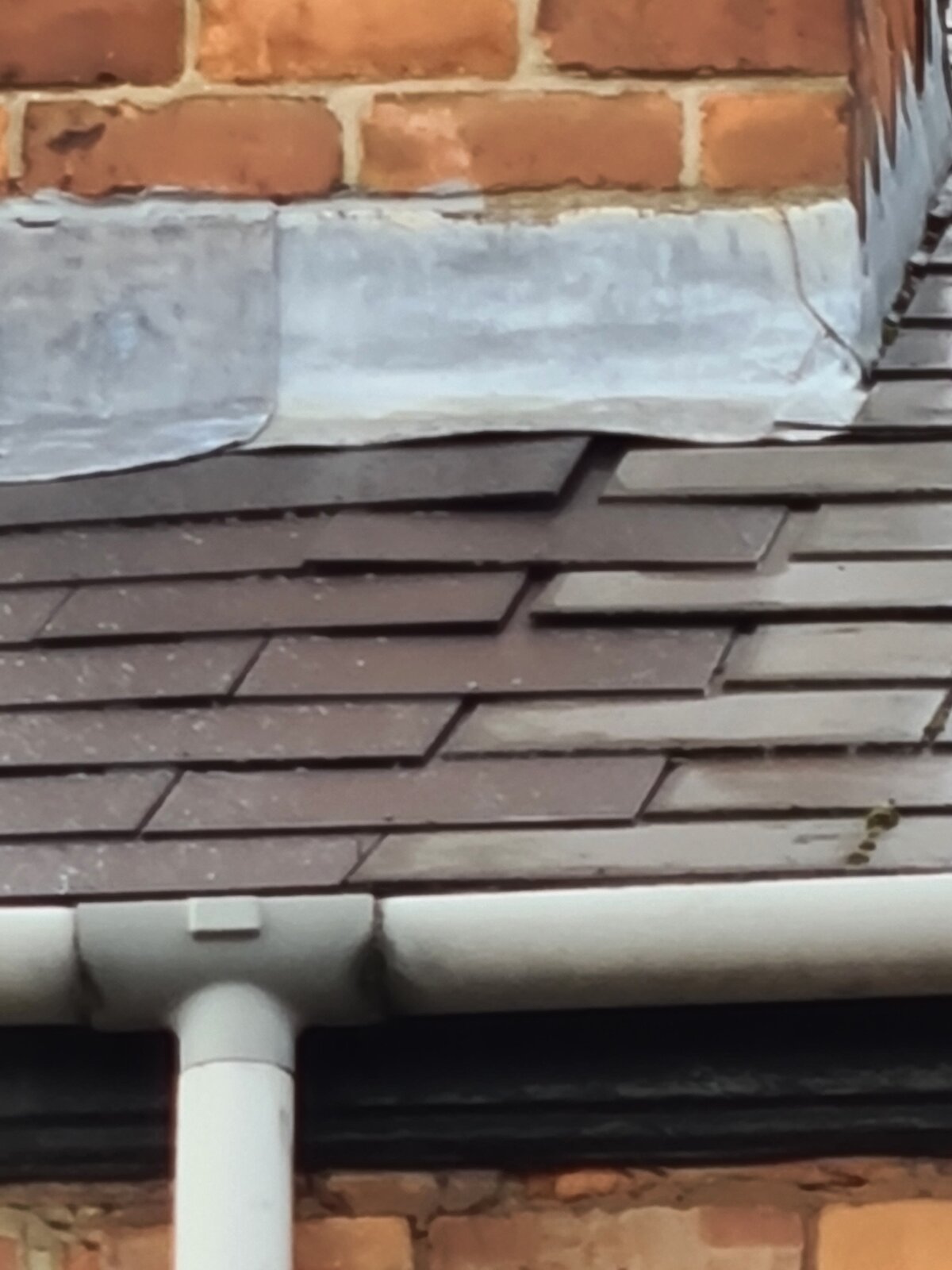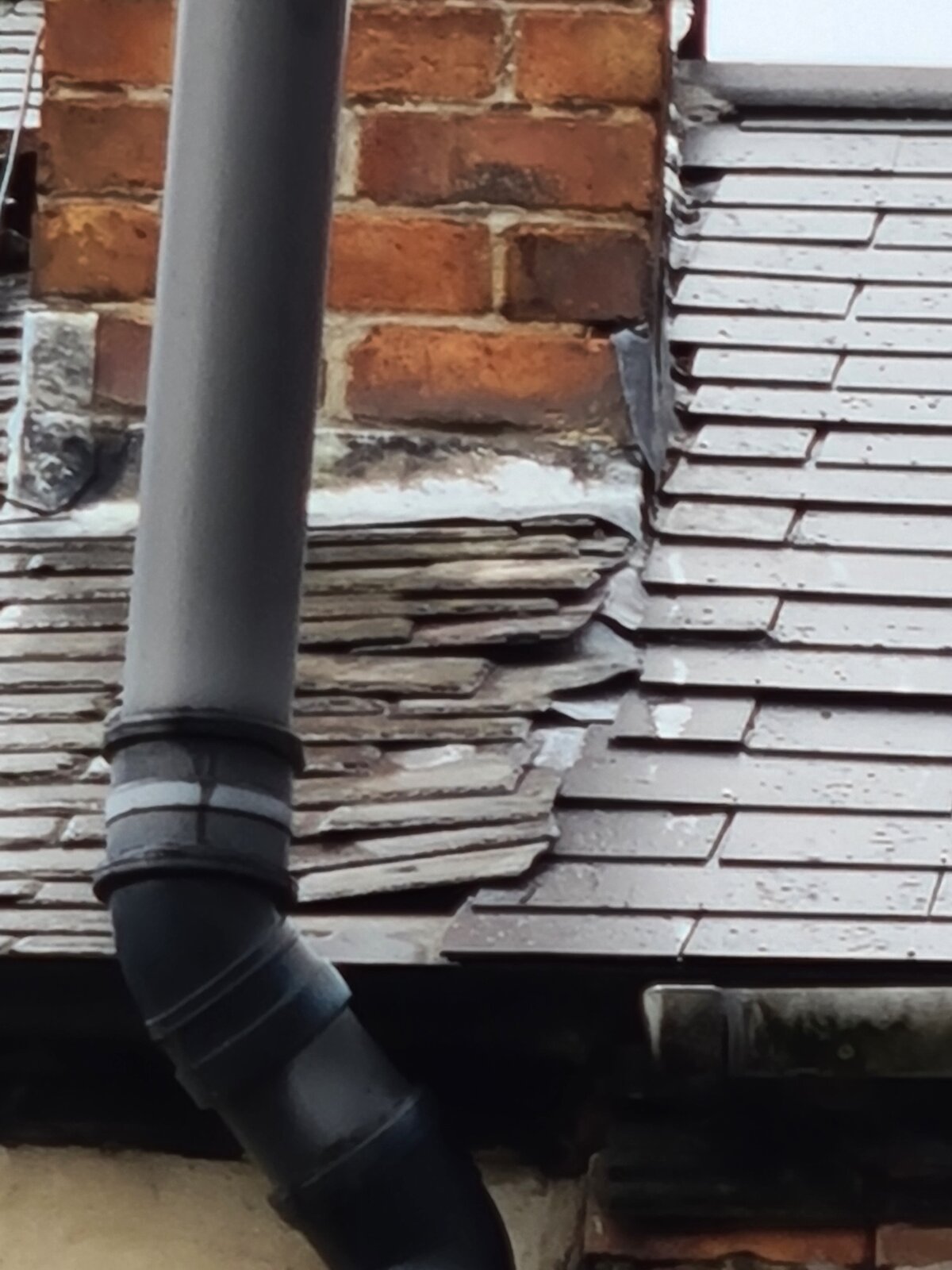 The joins to your neighbours is a total mess. Your slate would never had joined properly as they are differing sizes.