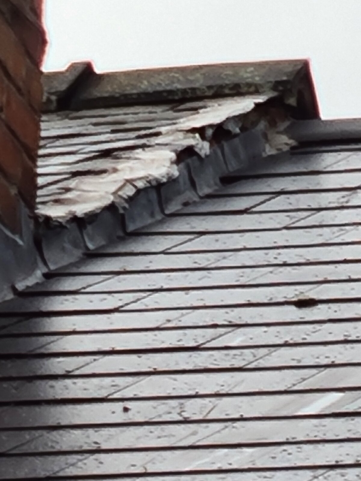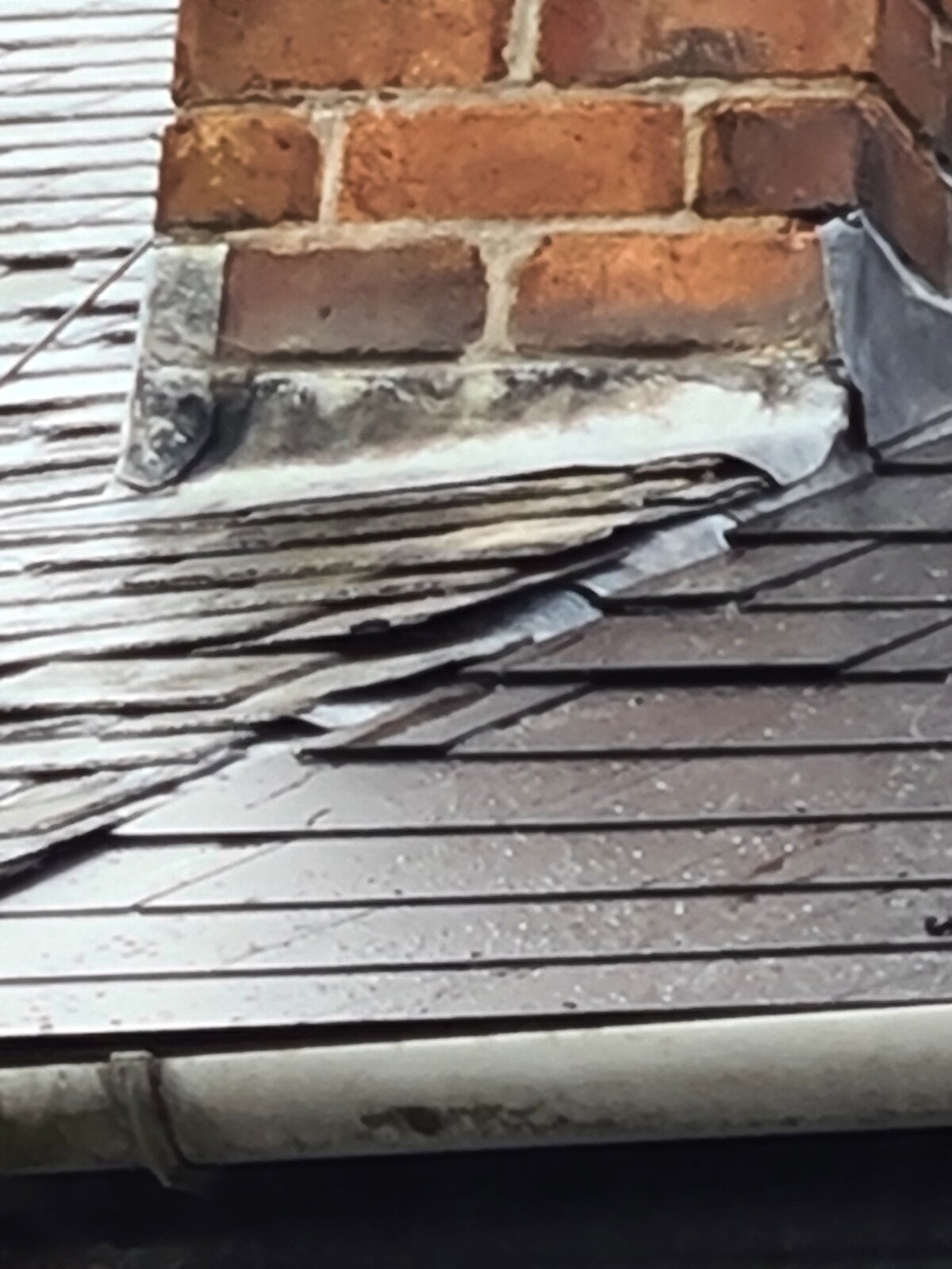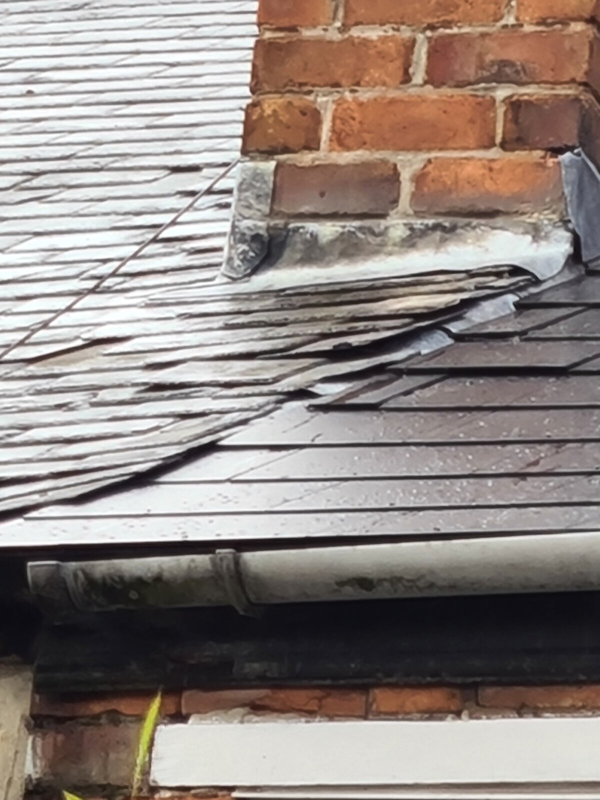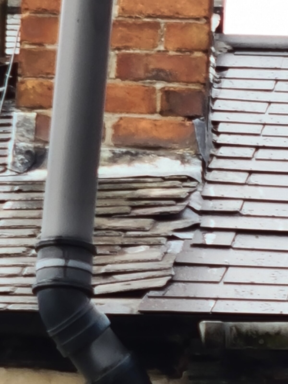 The joins to your neighbours is a total mess. Your slate would never had joined properly as they are differing sizes.
