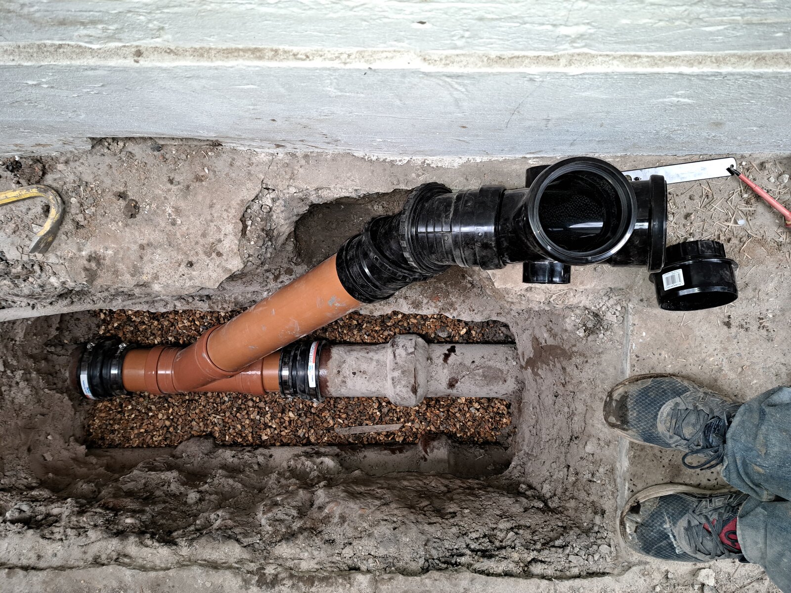 But there is the water main running right where I'd be trying to bring the new soil pipe through: