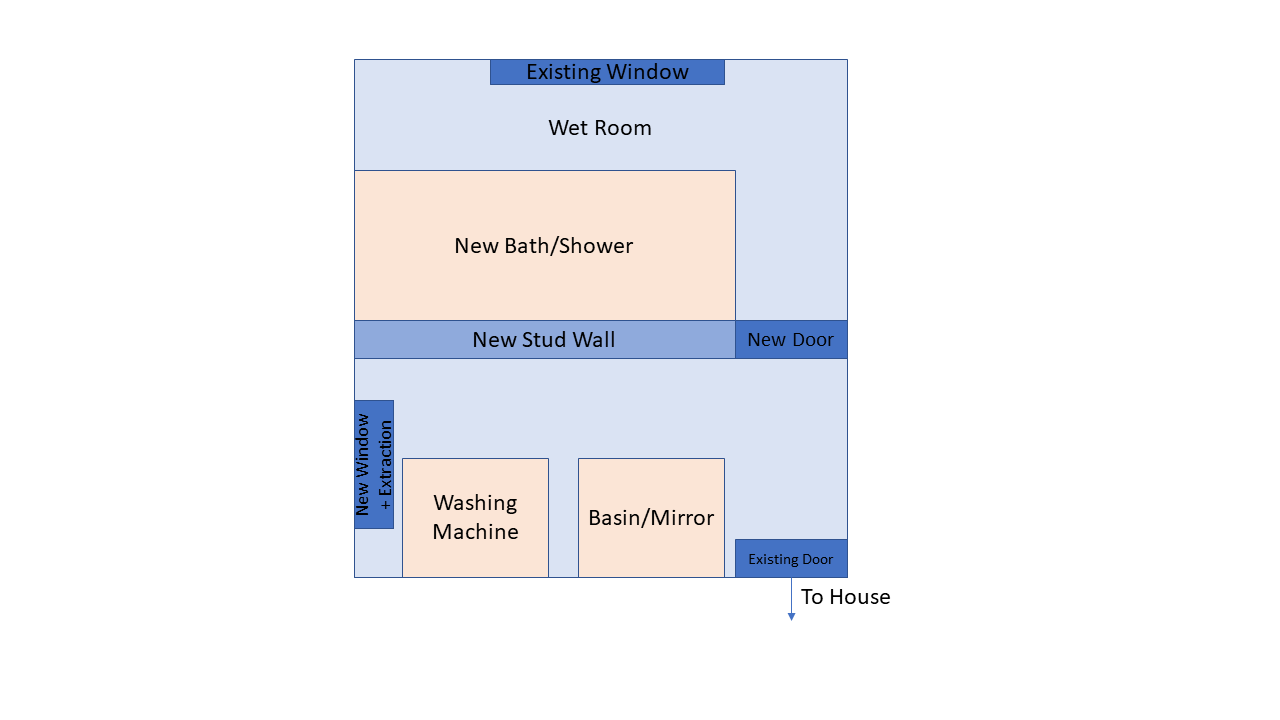 The new bathroom is a decent size, about 4m in length and 3.75 in width. So a lot of space to fill. What we don't really want is just empty space, for us it's not practical. In addition we like the idea of having the bath/shower in a separate room to the basin. Makes life easier for those who want to use the basin whilst someone is in the shower etc.