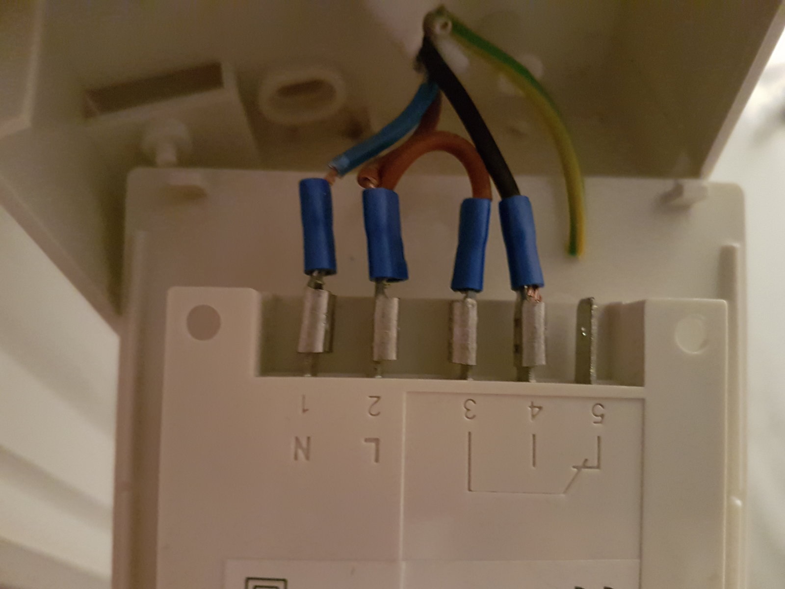 The wires connected to the old British gas one were brown to the L terminal, blue to the N terminal, black to the 3 terminal, and the grey wire had just been cut and was not connected to anything.