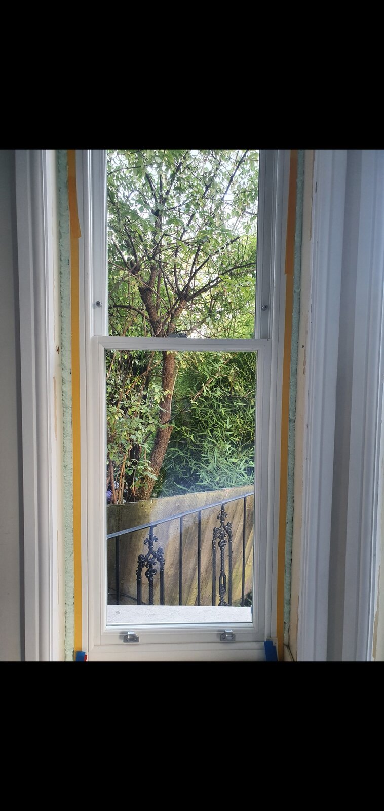 Confused/slightly concerned about something. They are being installed brick-to-brick (there's a "reveal" which I guess is standard for sash in victorian properties?). From the outside, the gaps on the edges look pretty small. They filled (temporarily I assume for weather-proofing last night) with expanding foam.