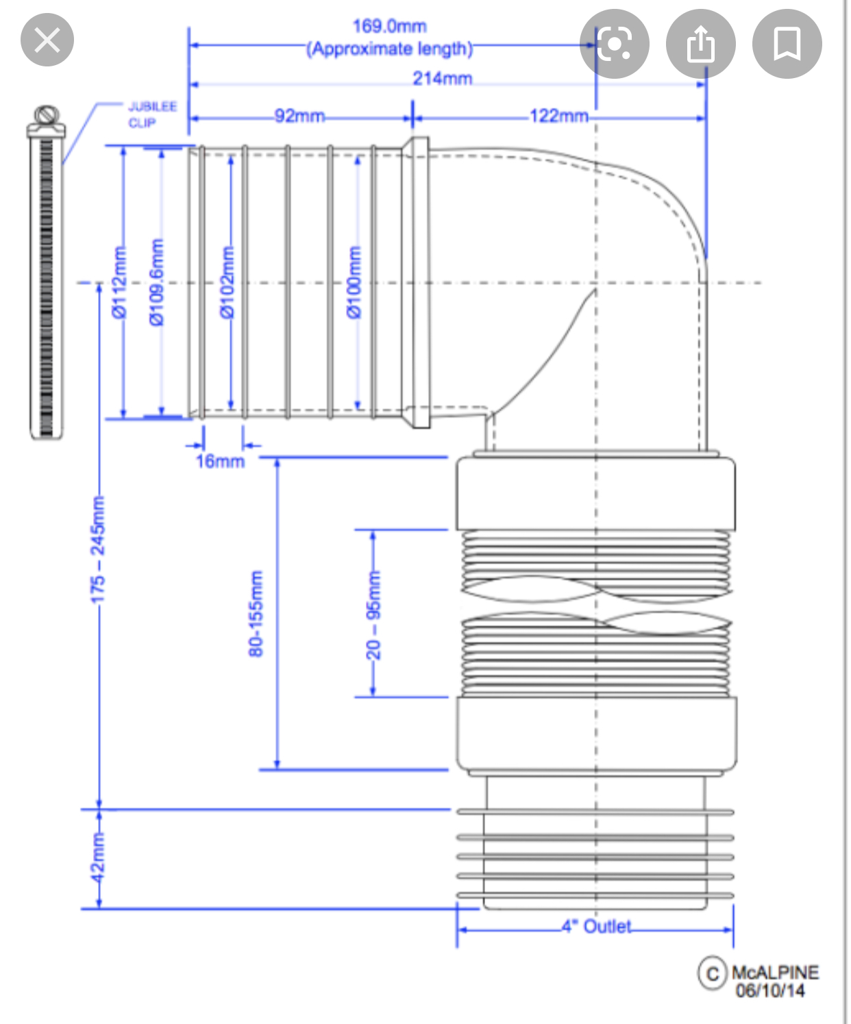 I know I need some ‘cutout’ to allow the side entry but as you can see the current one has loads of room but the new one only has enough room for a pan connector plus a bit of wriggle room. Is there a flexible elbow connector that’s best to use so I can bend it closer the wall and then 90 into the pan?