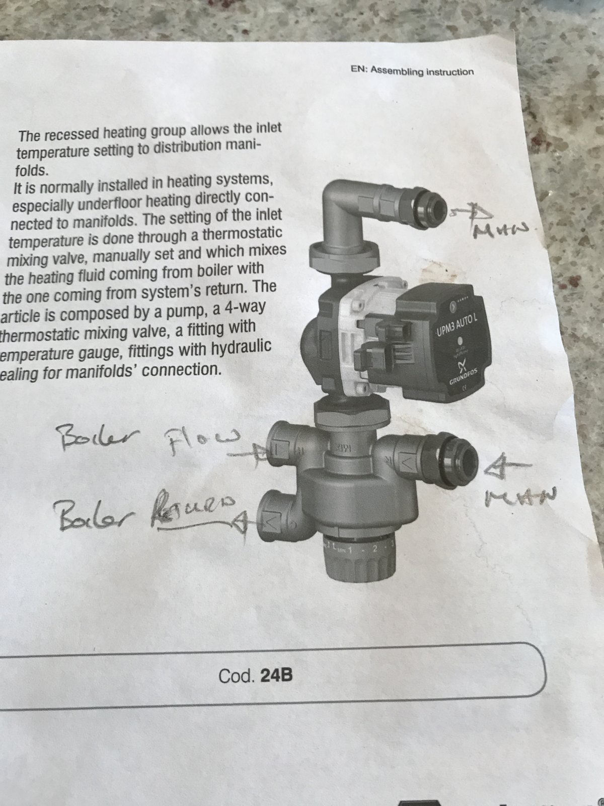I want the mixer on there to do as its intended not allow to hotter water in to the manifold and system but if i have no flow rooms do not heat up.