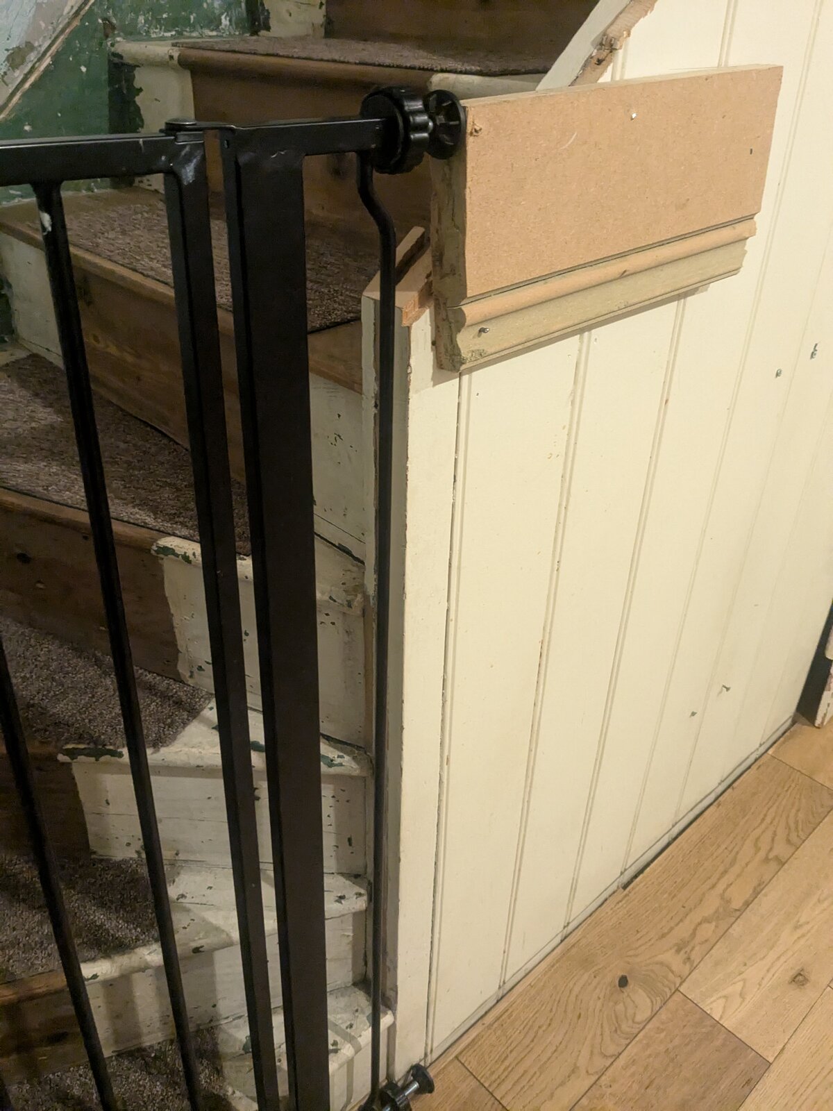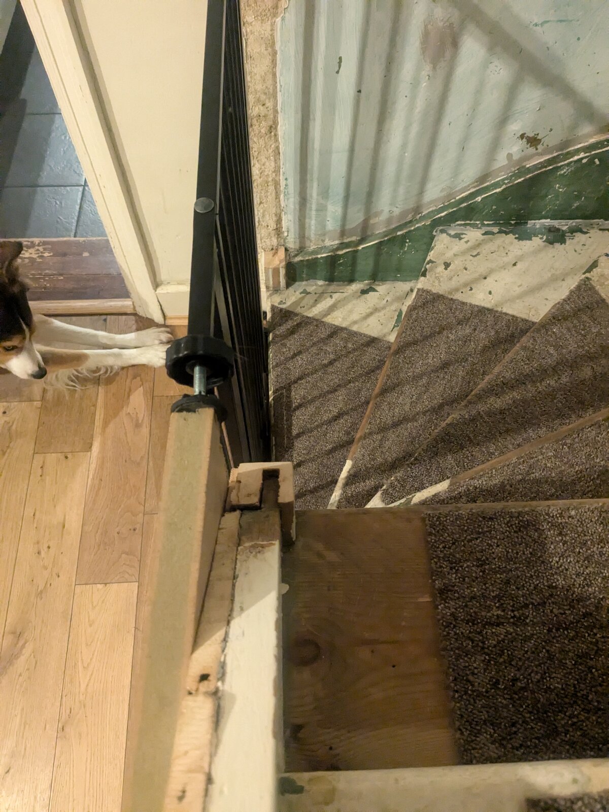 Excuse the skirting board and gate. Mutt mustn't go upstairs.
