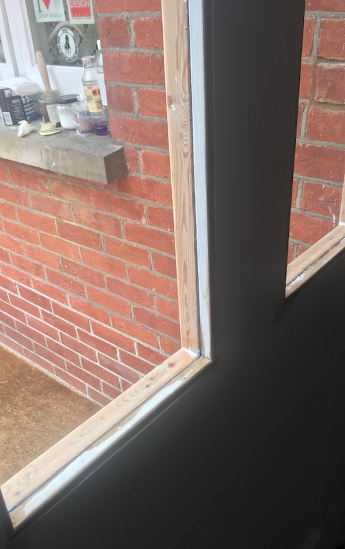 The glaziers turned up, removed the beading, fitted the glass and replaced the beading. I had no chance to decorate the beading. In an ideal world I would have bought new beading, mitred and cut it to fit and then given the glaziers that to replace.