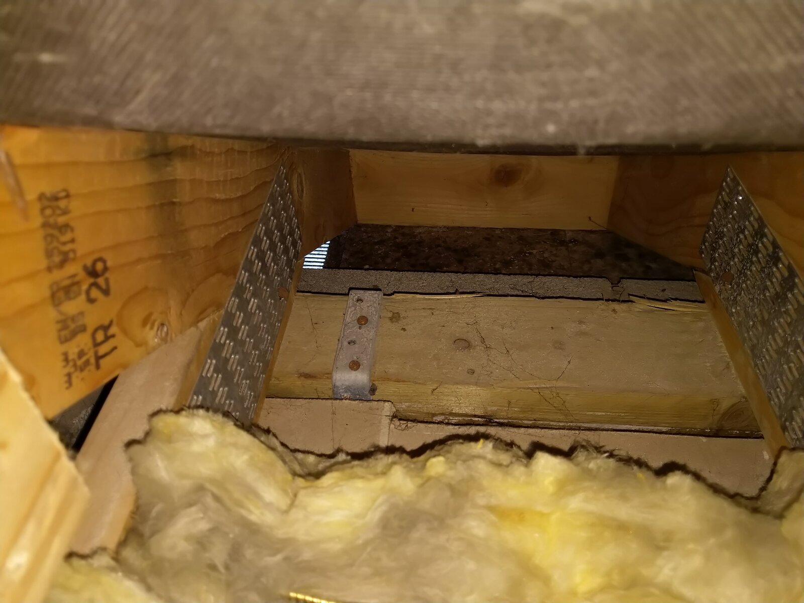 Recently had some work done on attic and I noticed that in the eaves I can see a gap between the wall plate and the plasterboard (photo attached). Should this gap be here (I don't think so, after some googling) - and if not what could I block it with as a DIY job? It's not easy to access from my attic flooring due to the slope of the roof. I was thinking of stuffing some of the attic insulation into the top of the gap (while being careful that the airflow from the soffits into the attic remains). I could just about manage that in terms of reach with a piece of timber.