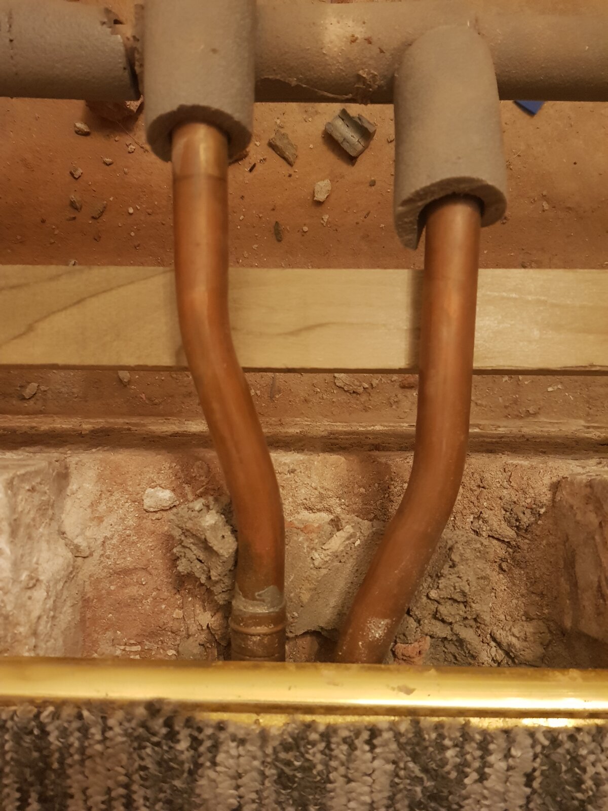 Looking for some help. Pic attached shows two 22mm rad pipes coming out of the hallway (concrete floor) into suspended timber floor and are messing with my plans to run a joist along the wall where they come out. The joists are 100mm which means I can notch max 12.5mm from them. However the top of the joist needs to sit at least just above the top of the pipe - that would require say a 25mm notch, double the Eurocode recommendations.