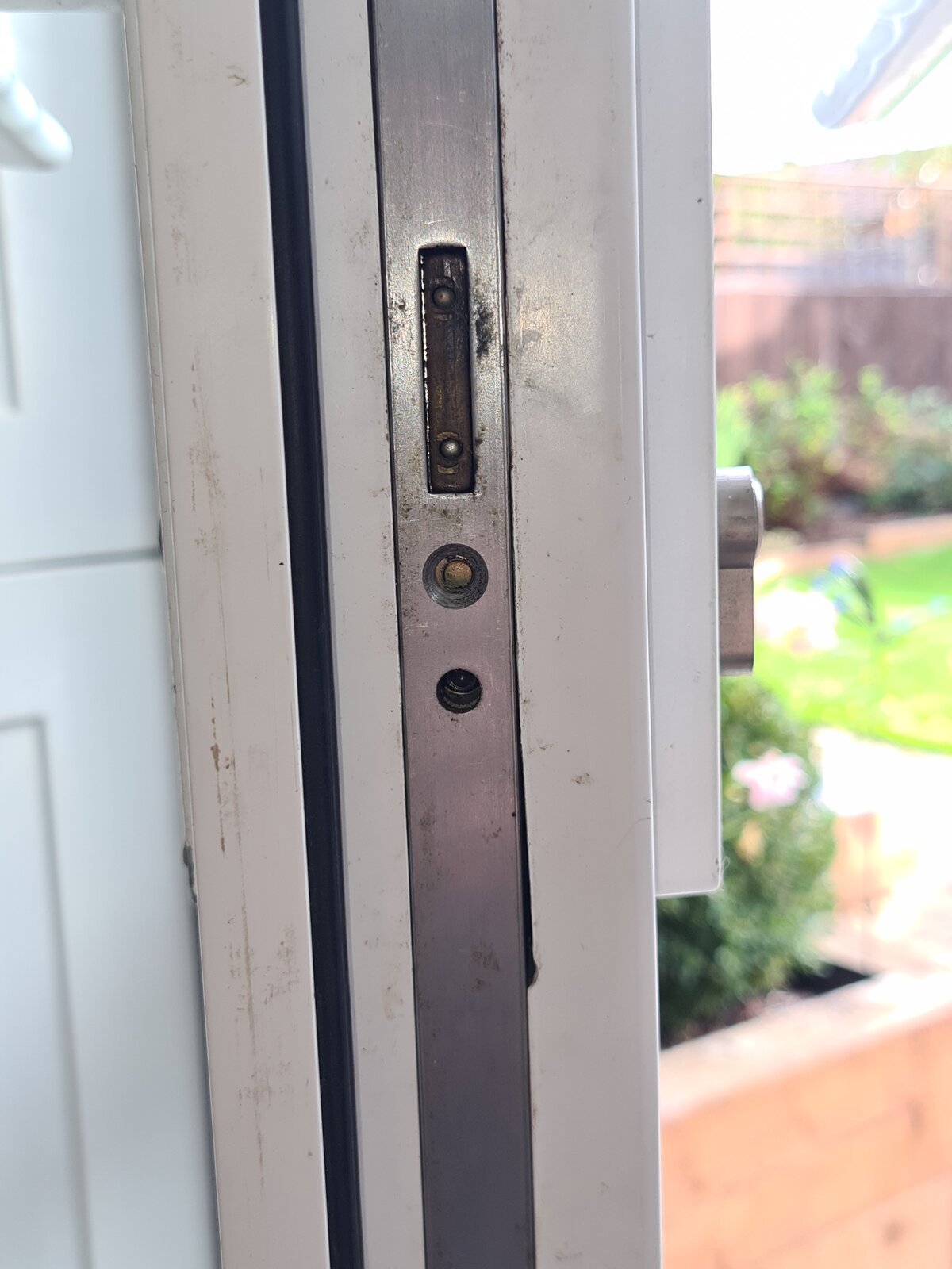 The door has a multi point looking system which I have attempted to remove too to see if the screw was under the metal facia, but I couldn't see anything...