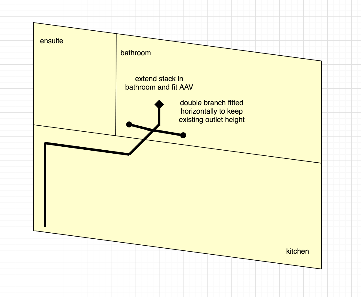 1. Theres no AAV. The soil pipe goes underground (furthest stack from the main drains), and theres an access manhole in the kitchen that was installed before the extension was done
