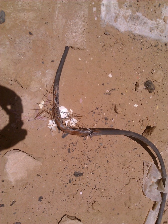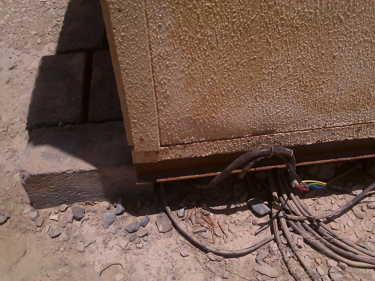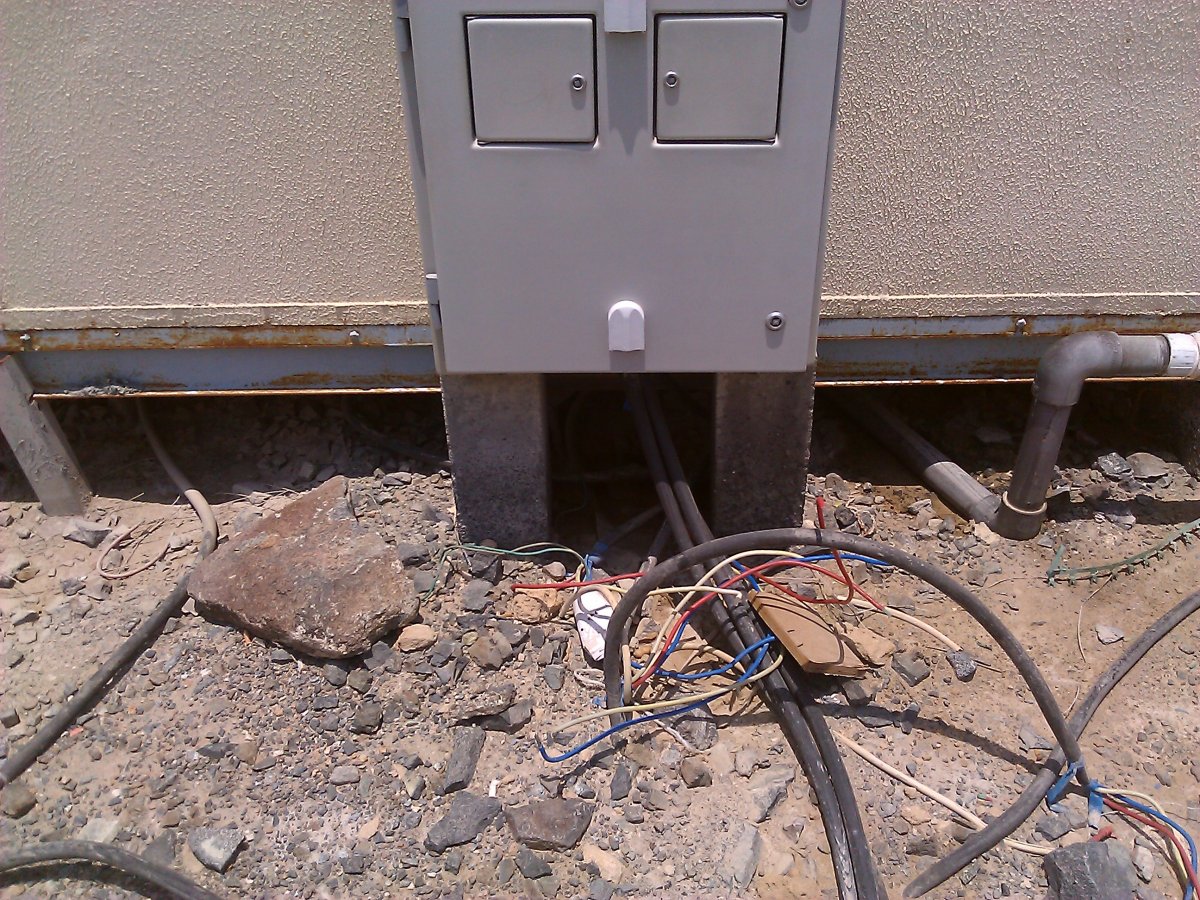 Not sure if this one is live or not, looks burnt, possibly crushed by a large vehicle and has burnt due to a lack of fusing or breakers.