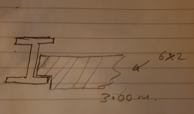 Its a 3m span and looking at the span tables I can put in 6 x 2 timber. To reduce the height, I'm thinking of notching the timber by 25mm which would be placed in the web. Then sloping the joist 1:80 for the rainwater. To ensure I have a flat ceiling internally, I will add the firring strips at the bottom of the joists. This should lower the ceiling by 75mm, which will be acceptable.
