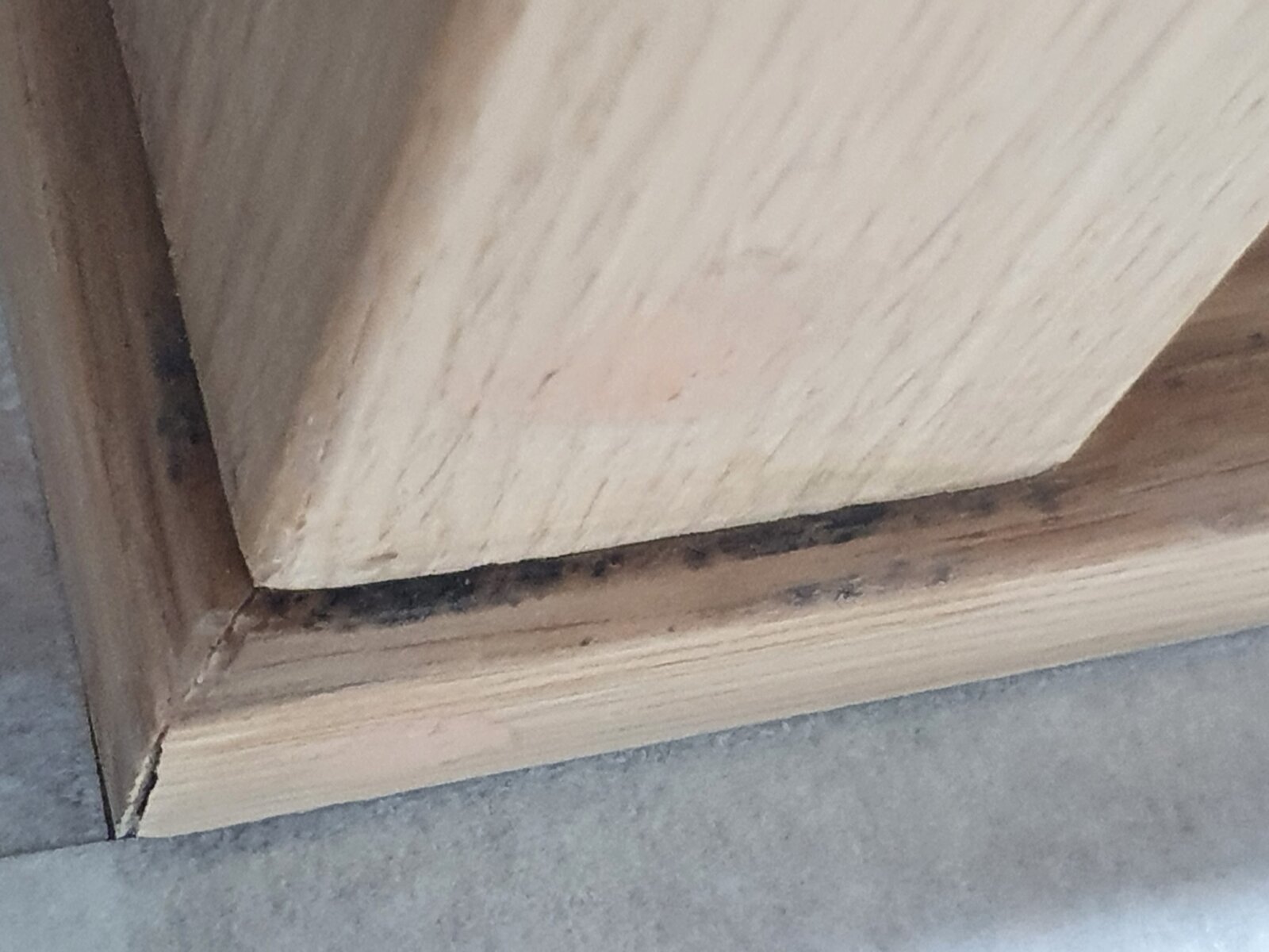 Where dowels or plugs (over screws) are used there are often a different colour to the surrounding wood (lower dowel):
