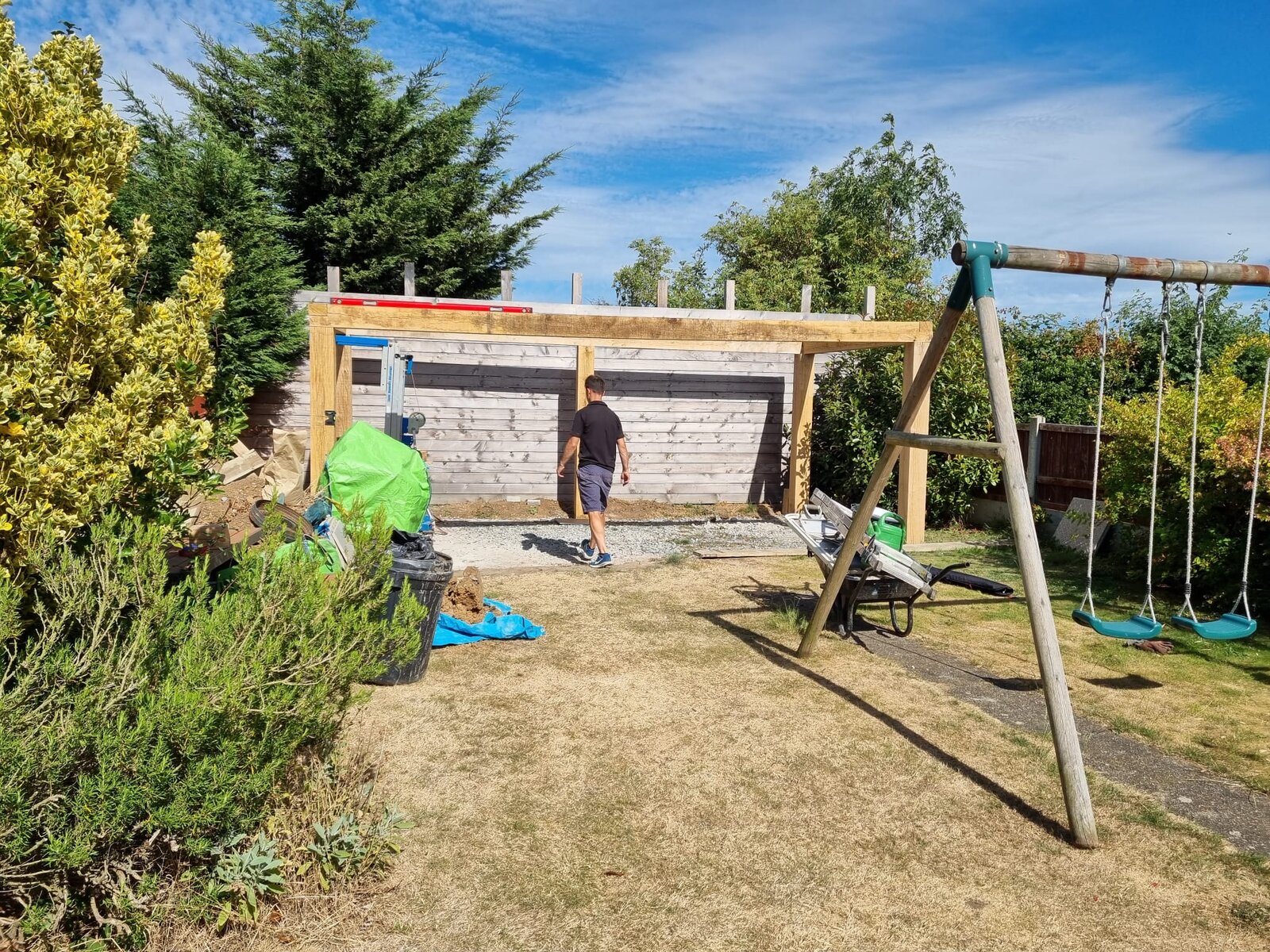 The overall structure is 6m x 3m the beam across front and back at 200mm x 150mm oak beams horizontally and 200mm x 200mm oak vertically. She's a chunk!