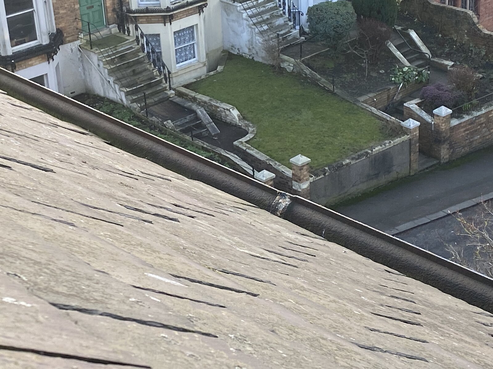 I will load some pics. One from the ground and two out of my velux. It’s about 11m high. We are getting scaffolding in and will be repainting the facials and gutters. So we want to solve the leak issue as well