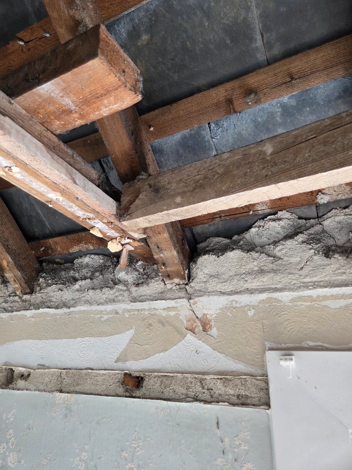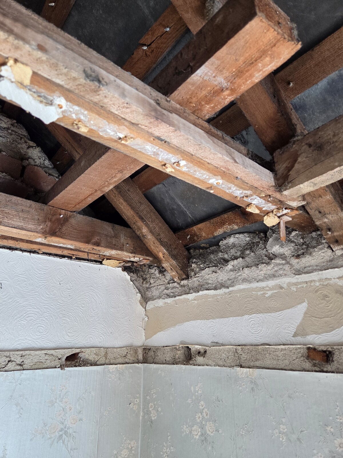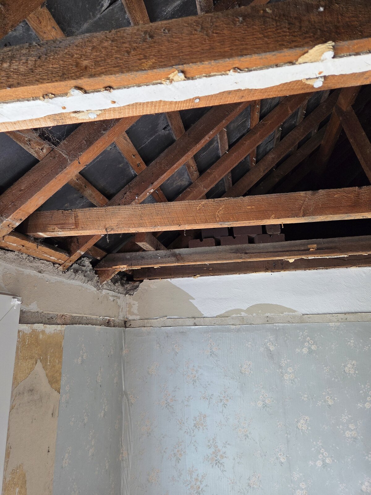 Recently pulled down the ceiling in a 1930s semi, North Devon, due to sagging ceiling, 1st floor bedroom, no intention to use loft.