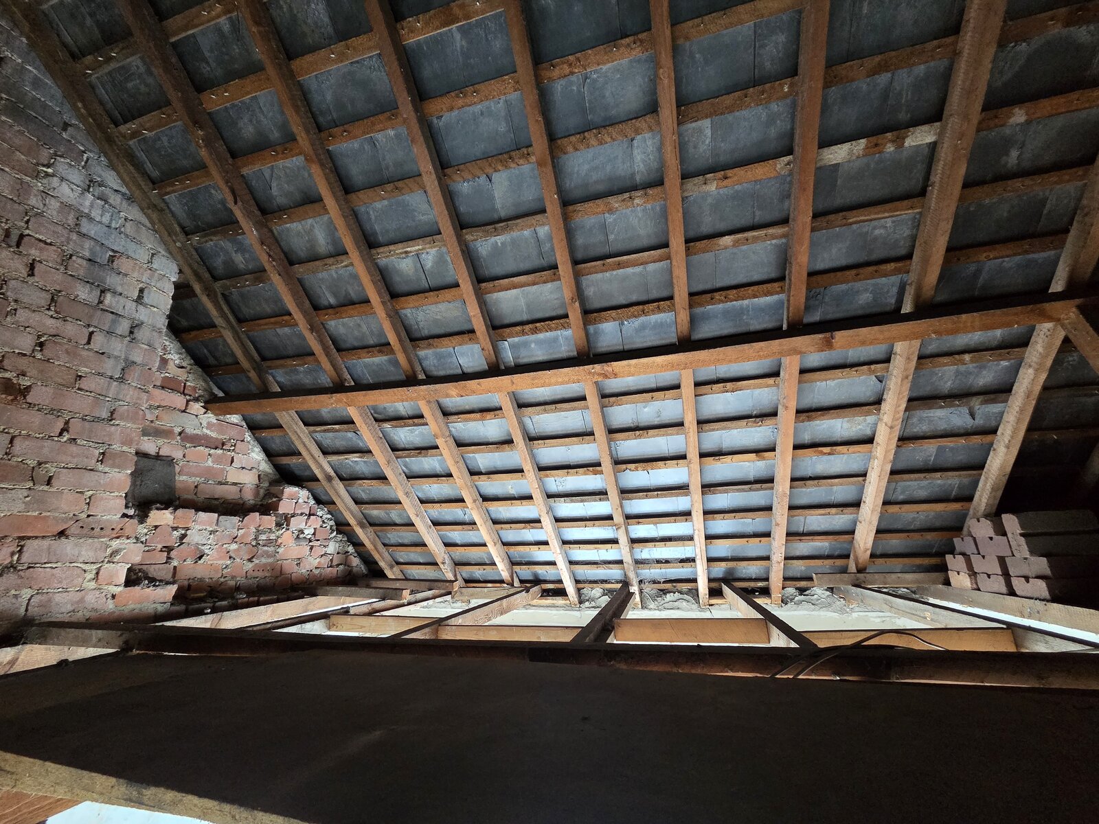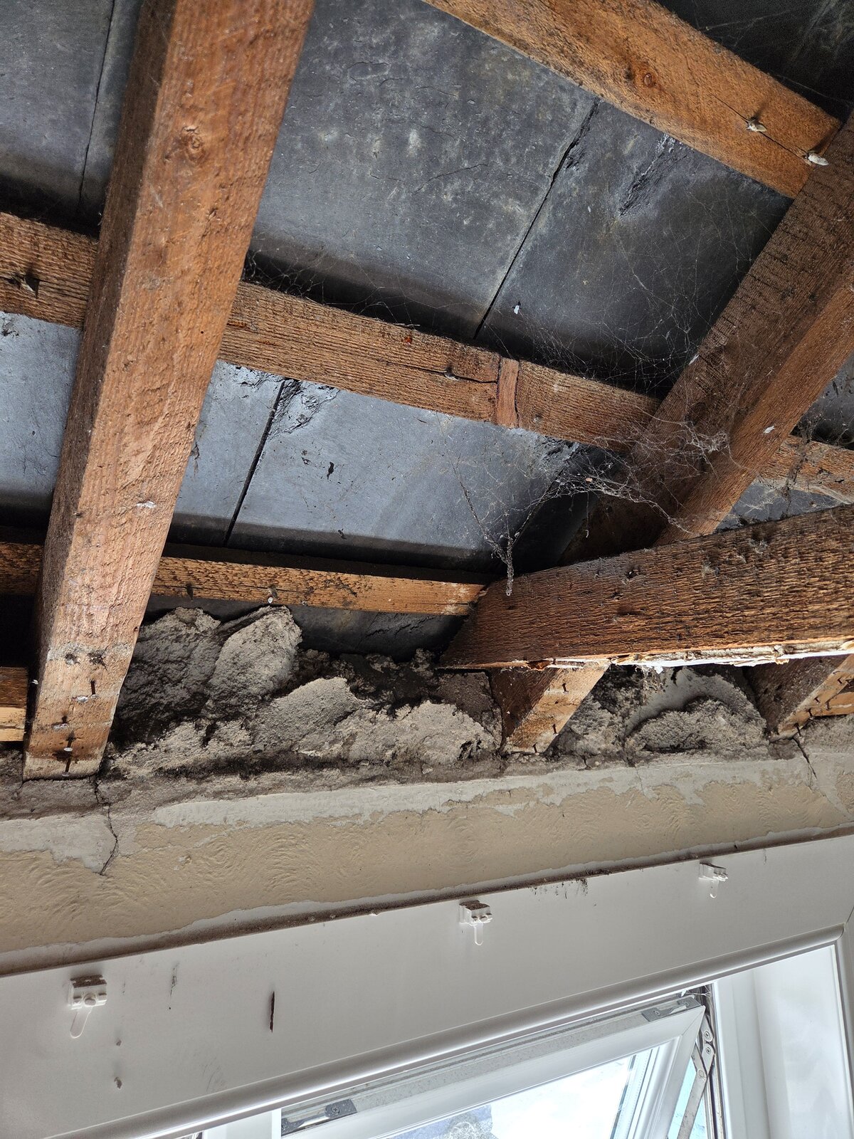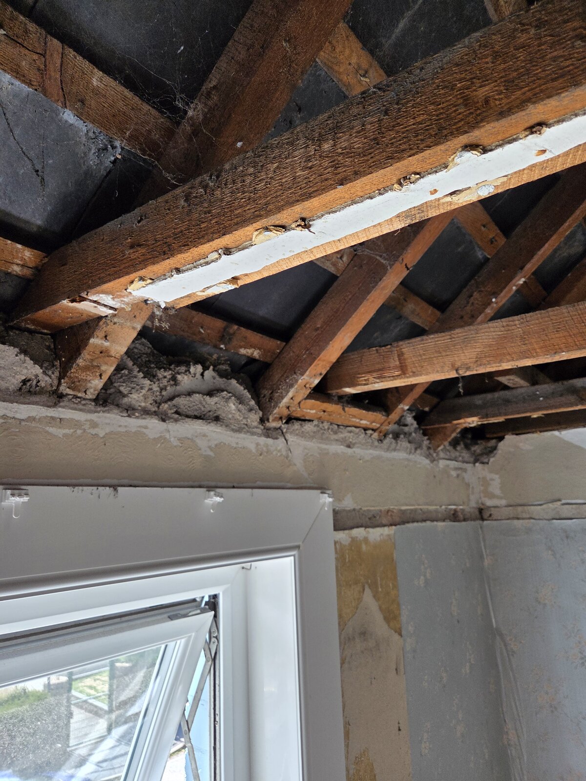Recently pulled down the ceiling in a 1930s semi, North Devon, due to sagging ceiling, 1st floor bedroom, no intention to use loft.