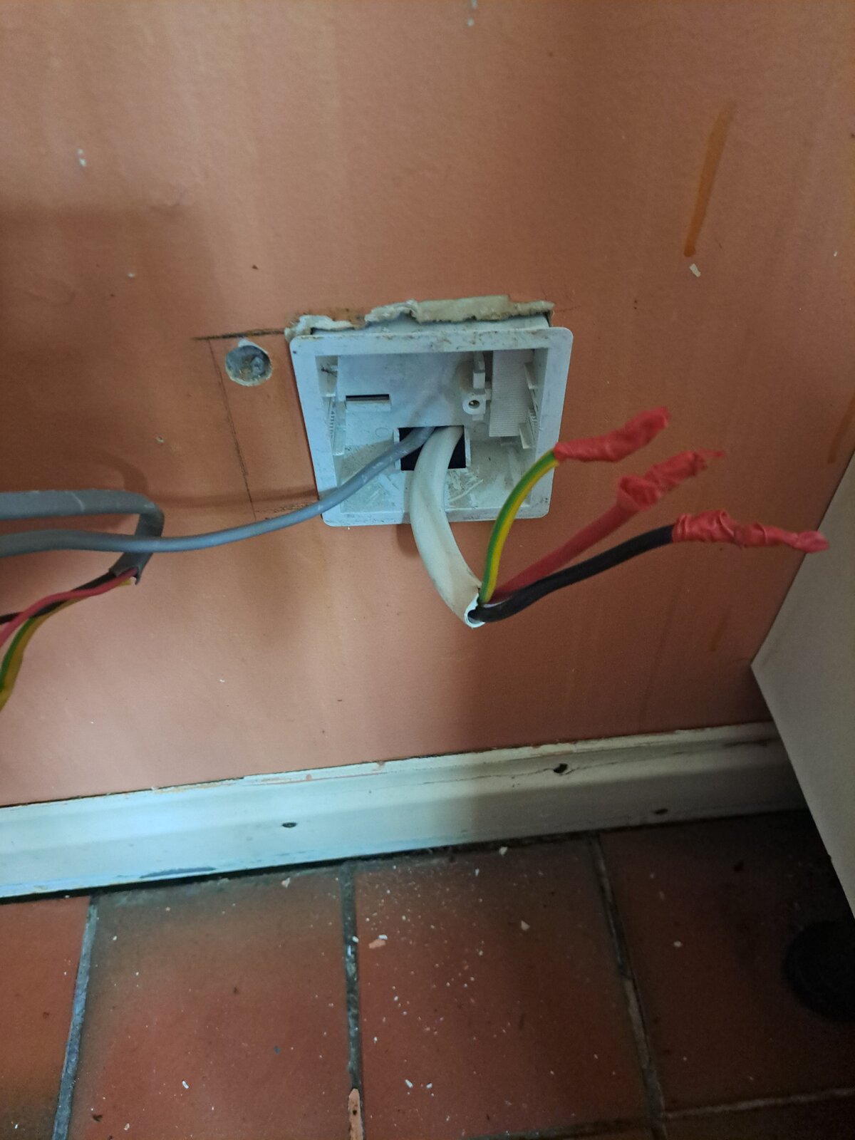 I have a old socket for old cooker I have skipped, see attached its the thick I think 6mm cable to the right, the other cable to the left is just a feed from there to the hood so dead unless I connect underneath for another socket above.