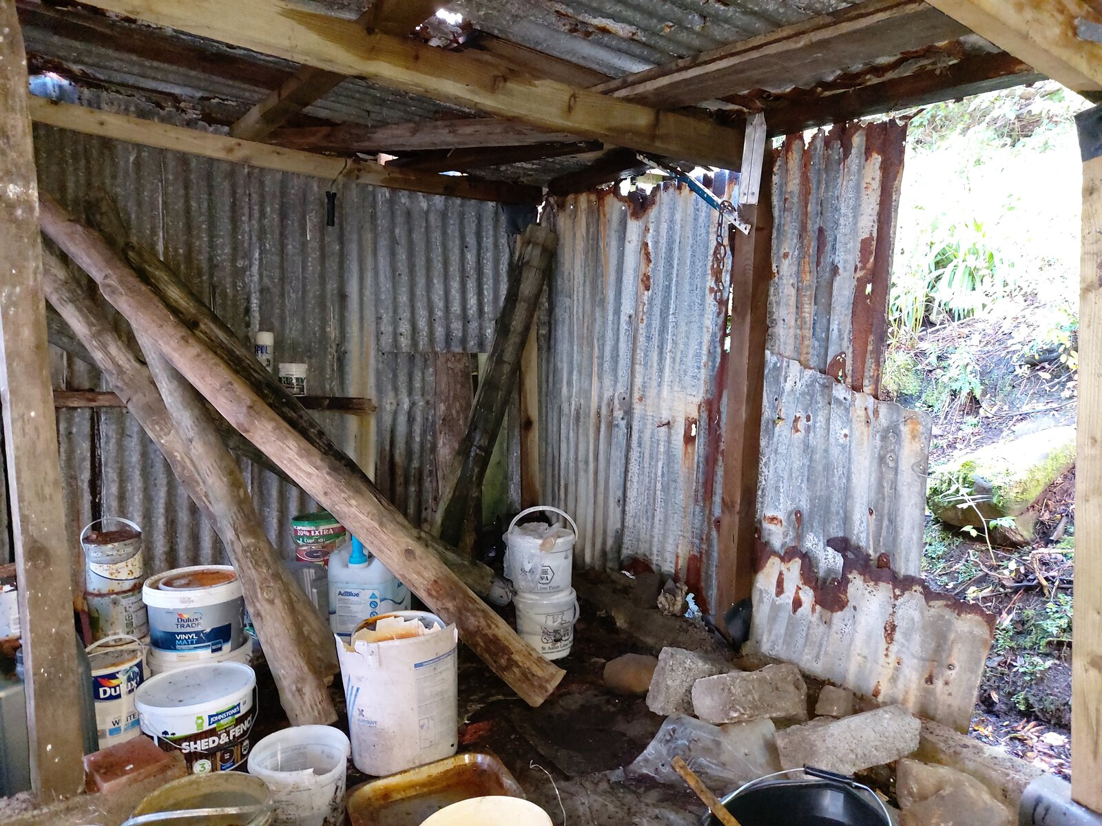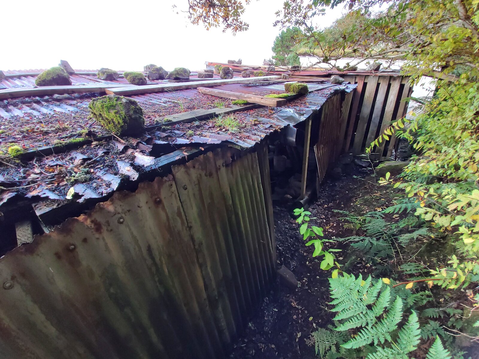 The back wall which is very sheltered by trees and a big earth bank is very rusted, some of the panels have already been taken away.