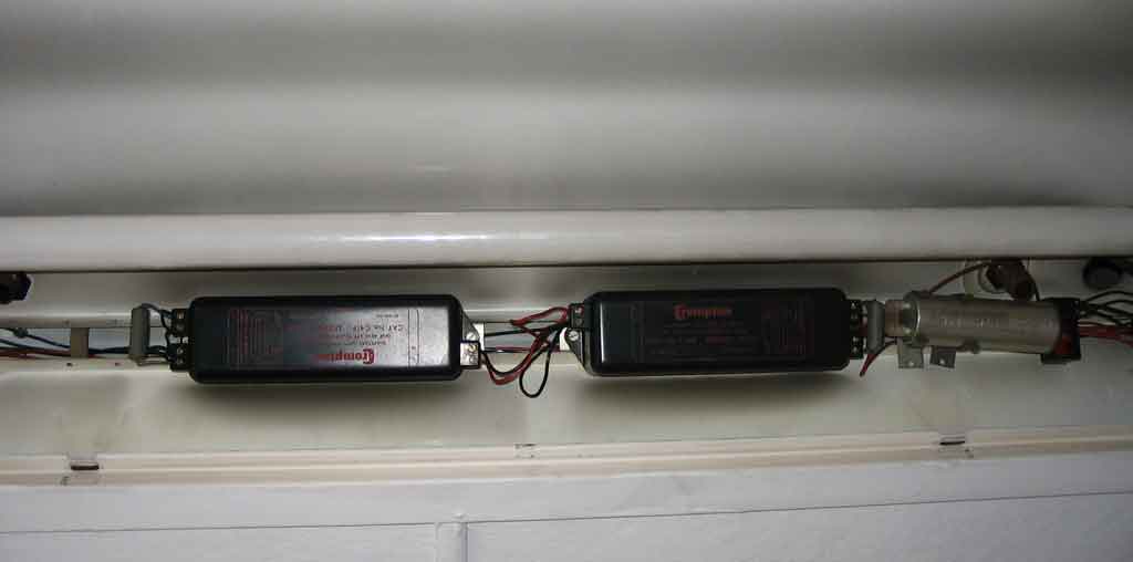If there are more than two it sounds like they could be either an electronic choke or capacitance start. If you are you using slimline tubes, capacitance start fittings don't seem to work properly.
