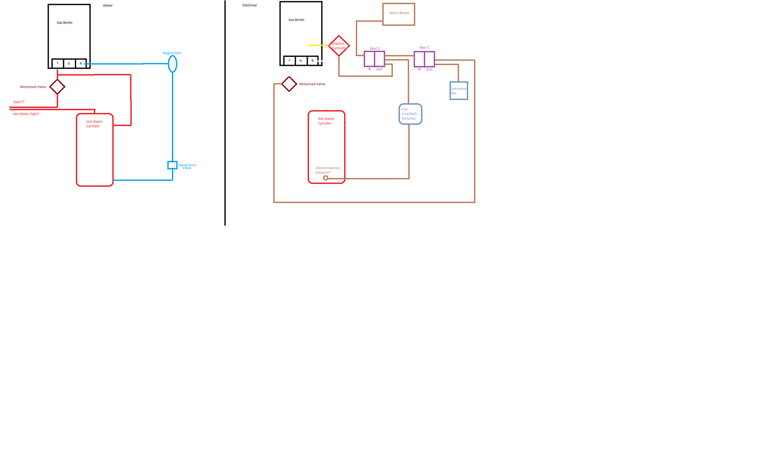 However, your diagram shows the Gas Boiler / Drayton controls fed from the same spur as the immersion heater and the, heating wiring and motorised valve from the other.