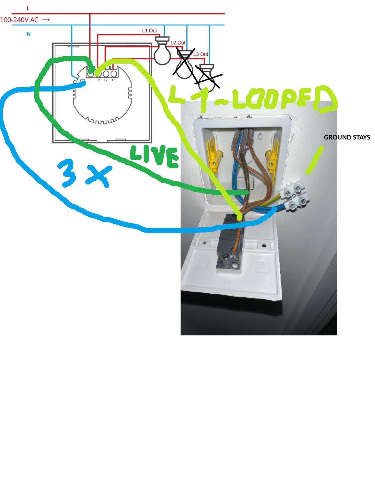 Forgot to mention its a 3gang but will use 2 for wifi leds. There’ll be only 1 actual live ceiling light connected. I think im slowly getting there somehow. Wiring is not that easy i guess.
