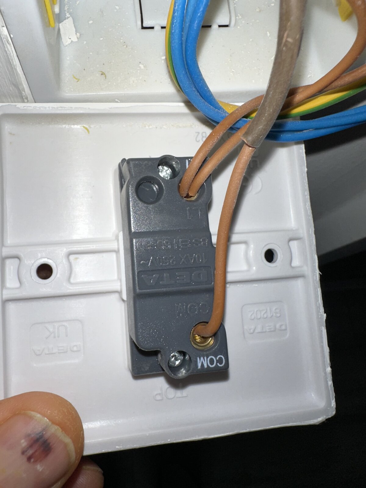 Ok, not using red but brown 1764167088128.pngthe guess work is two browns to com (L) and one brown to L1 or other way around, I would test as I have a tester to hand, permeant Line should go to L, but can't see a problem just trying to see which works.