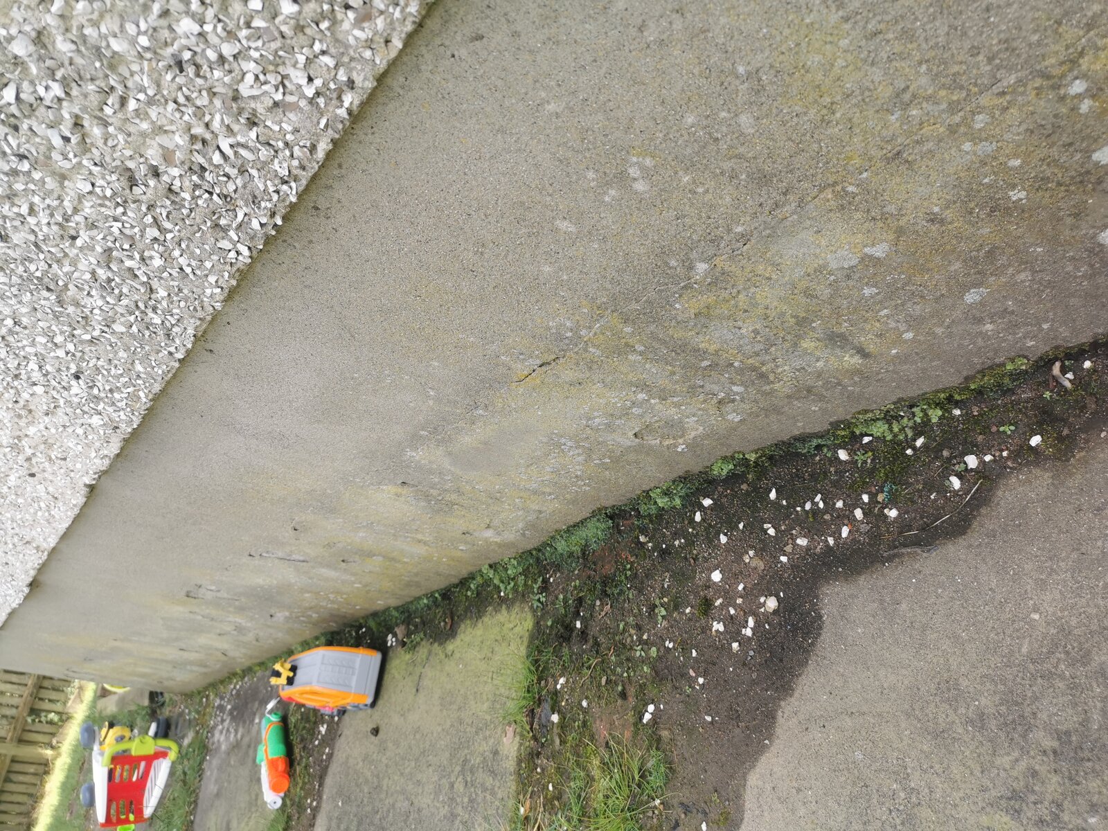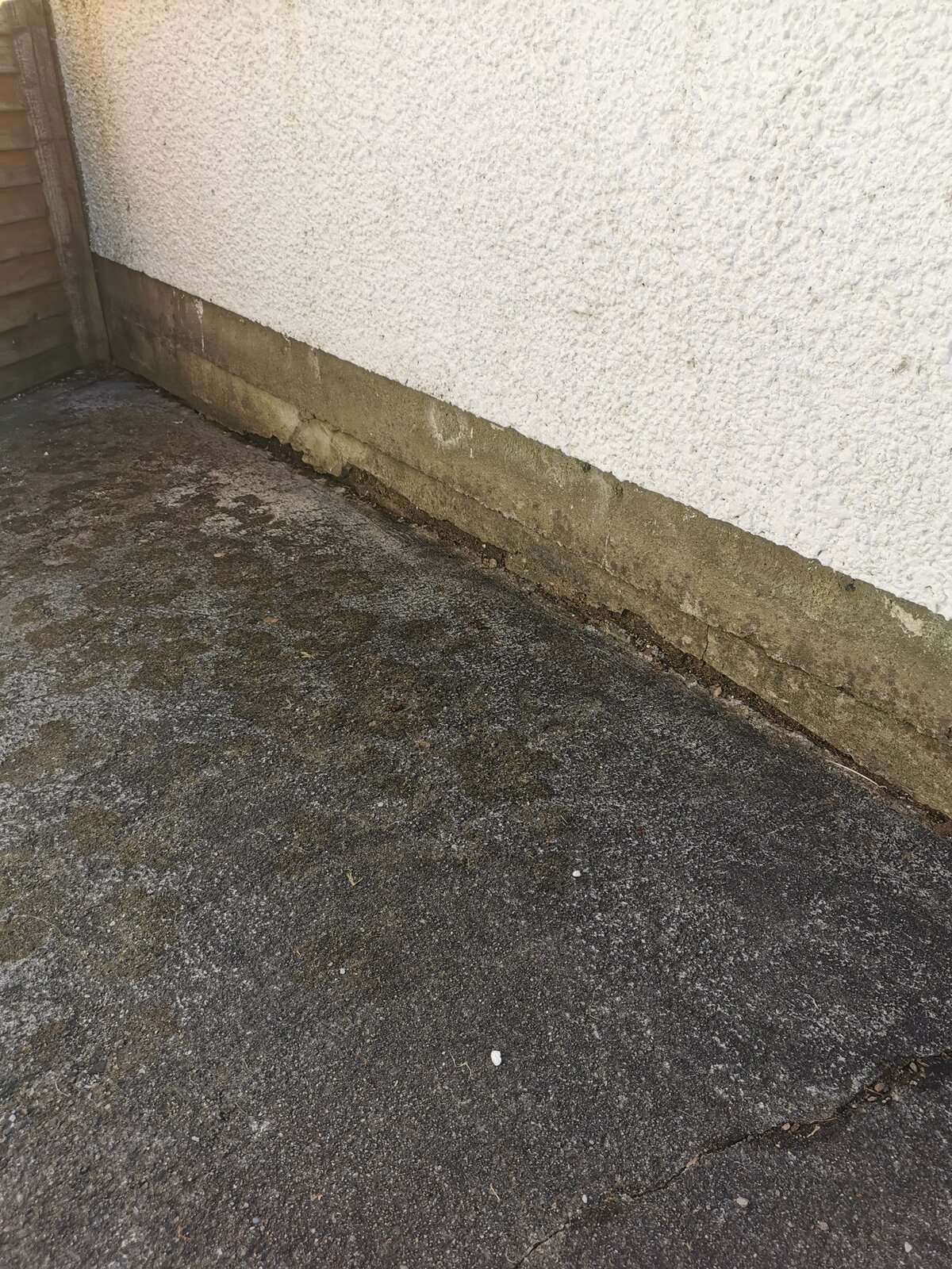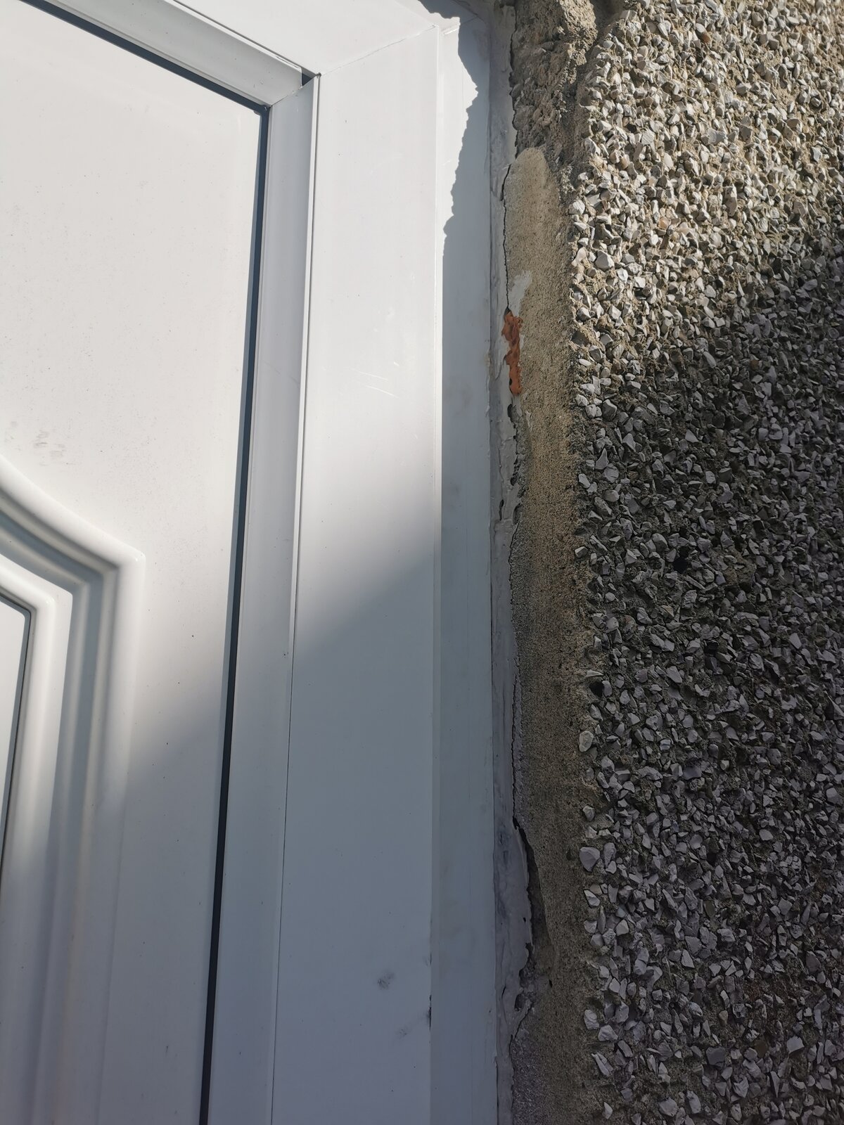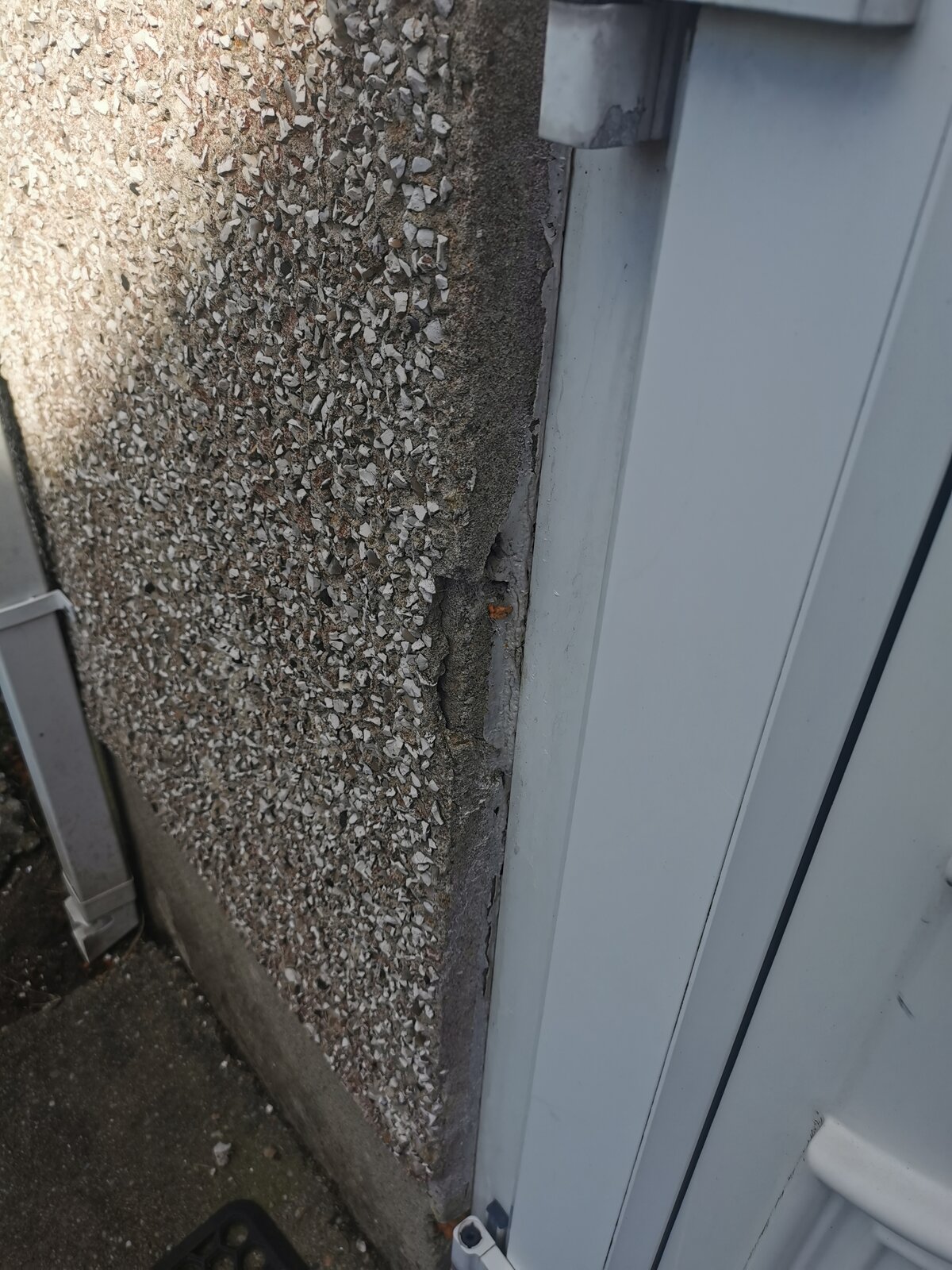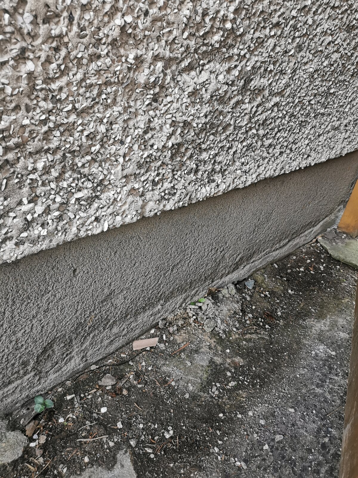 Old Render around the bottom of my pebble dash wall and garage and quite bad around garage door.