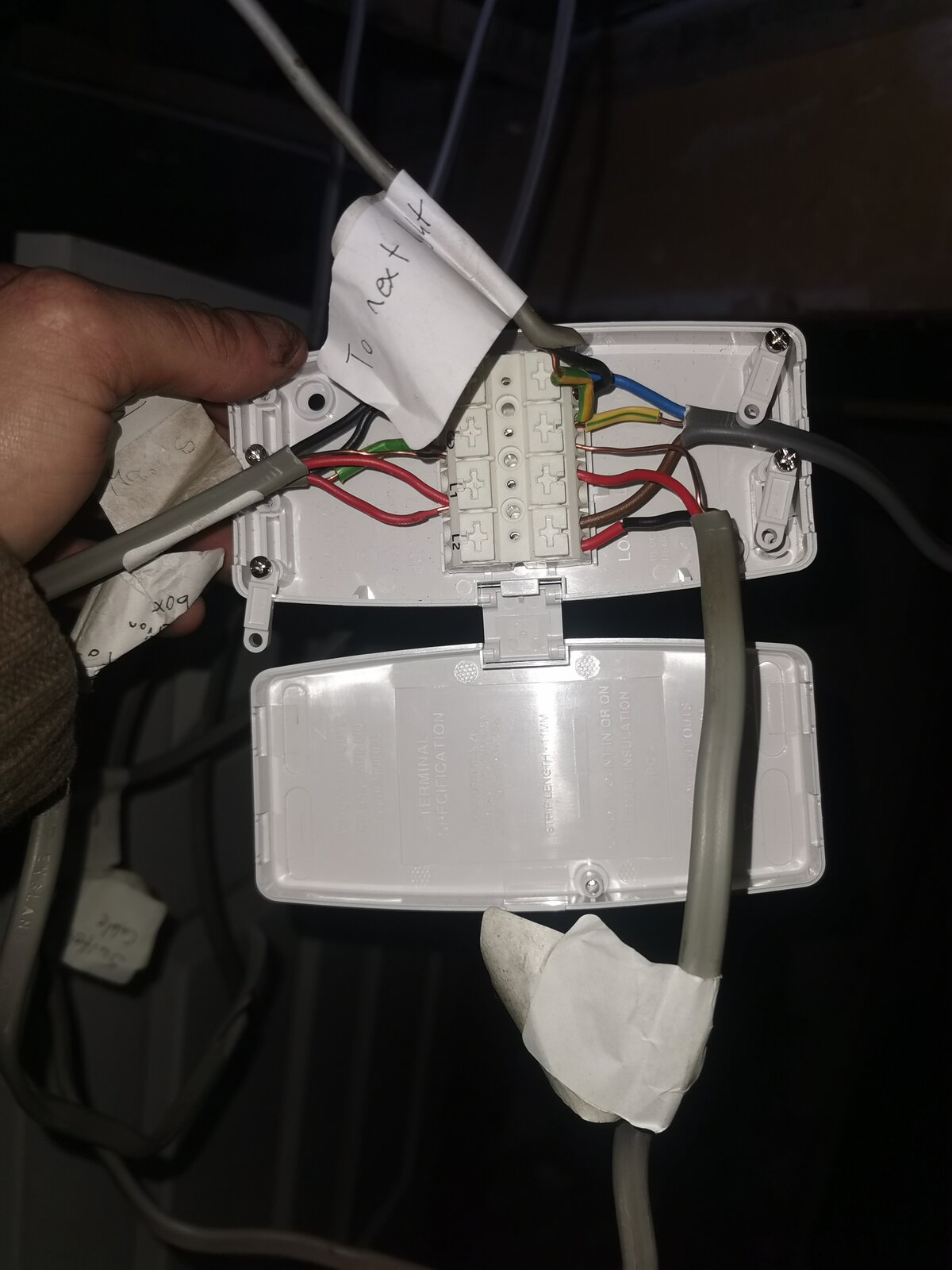 The junction box that I've worked up is the same connections as the previous connections but I added a new cable to connect to the 1st set of downlight that would correspond with the 1st switch.
