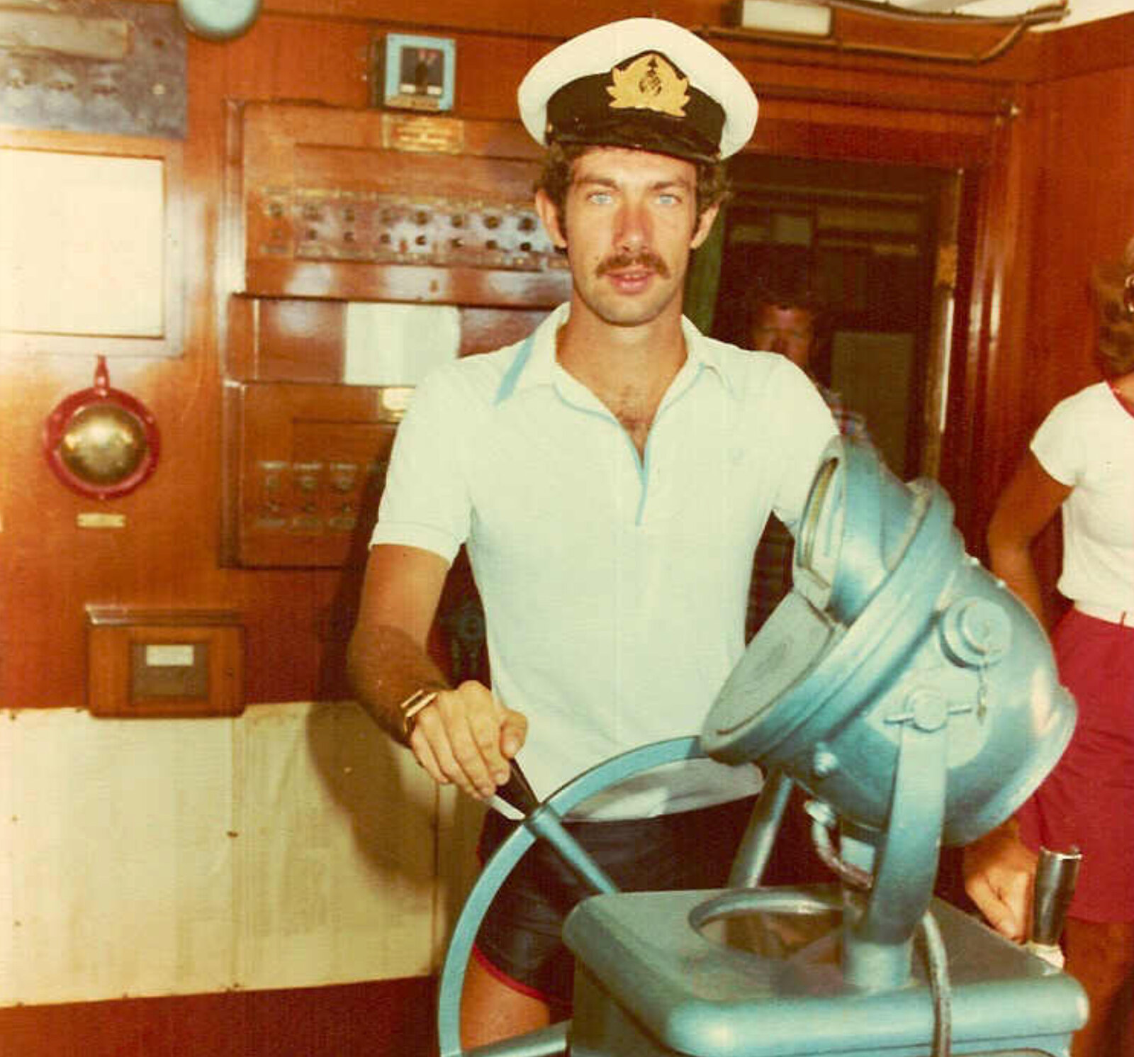 Lol No! That was Pete - a South African we met on the cruise He was going to London with his wife and we met up with them and showed them the sights. In those days I was a bit thinner than I am now. On the same cruise when they let me have a go at driving the ship….
