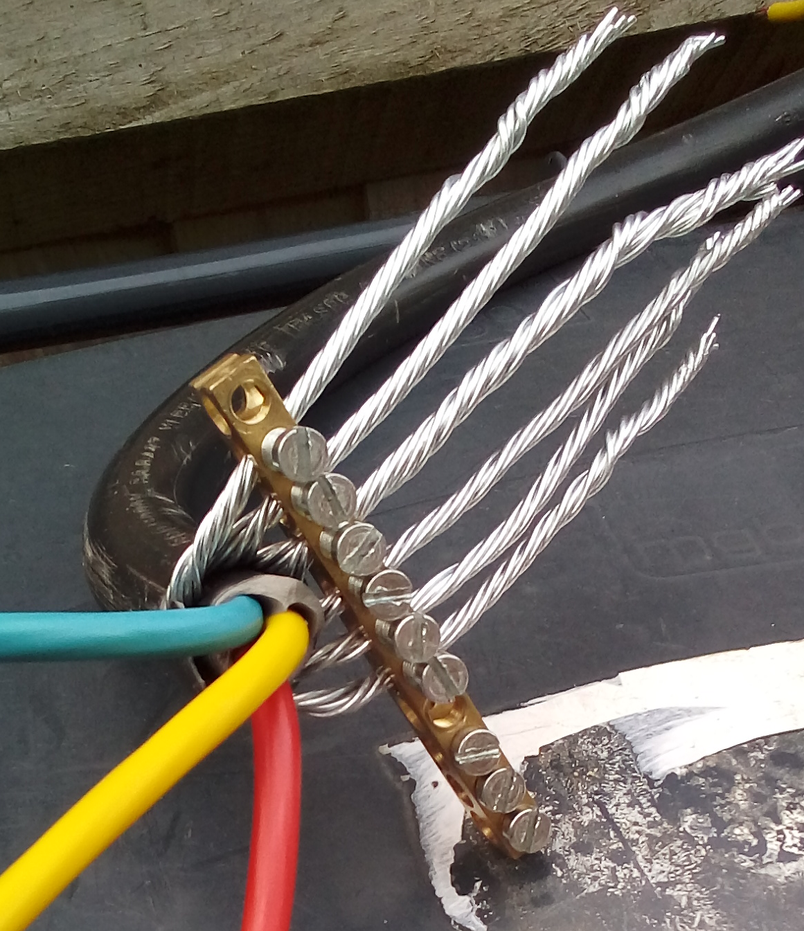 The yellow earth wire clears the neutral by a good 1/4" and the armour is clear behind that so more than 1/2".