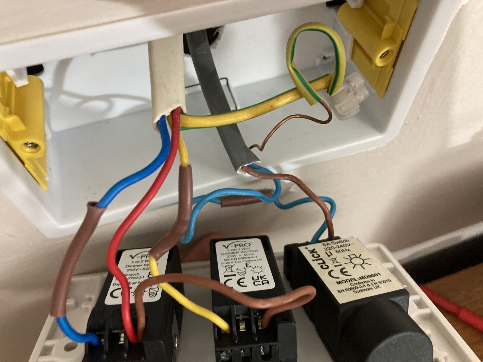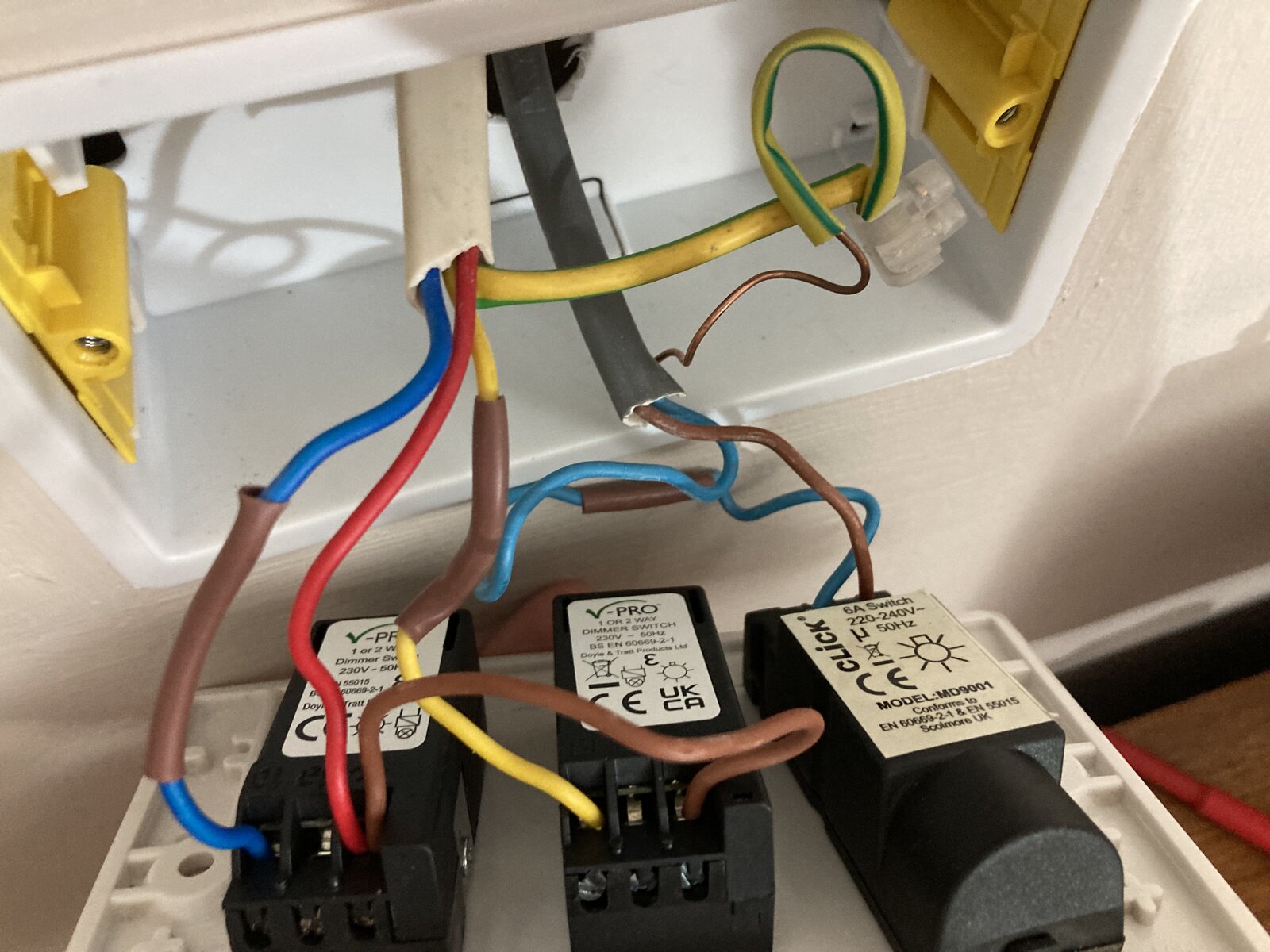 Obviously the wires they’ve left are rather long, but looking for the most likely cause of the failure and also I noticed that above the middle switch had been getting hot so I have disconnected everything for now and any obvious reason why that would be before I call a spark in for more thorough investigations? If it’s just going to be swapping out the failed switch and shortening some wires to wire back in I feel competent but beyond that I’ll call a spark.